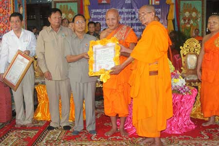 សម្តេចព្រះវនរ័ត ណយ ច្រឹក ព្រះសង្ឃនាយករងទី៣នៃព្រះរាជាណាចក្រកម្ពុជាបានព្រះរាជ បន្ទូលកោតសសើរចំពោះថ្នាក់ដឹកនាំខេត្តនិងថ្នាក់នាំមន្ទីរធម្មការ និងសាសនា ខេត្តដែលបានខិតខំ បំពេញតួនាទីនិងភារកិច្ចលើកស្ទួយនិងអភិវឌ្ឍវិស័យព្រះពុទ្ធសាសនាឲ្យមានការរីកចំរើន ដោយមានវត្តអារ៉ាមជាច្រើនកន្លែងត្រូវបានកសាងឡើងវិញ បន្ទាប់ពីត្រូវបានបំផ្លាញស្ទើរអស់ទាំងស្រុងក្នុងសម័យសង្គ្រាម។