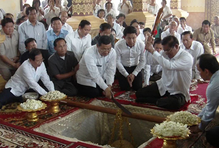 បាត់ដំបង ៖ ឯកឧត្តម ស ខេង ជុំរុញអោយប្រជាពលរដ្ឋធ្វើអត្តសញ្ញាណប័ណ្ណ ដើម្បីចូលរួមបោះឆ្នោតនាពេលខាងមុខនិងធ្វើប័ណ្ណការងារឬផាស្ព័រ មុននឹងទៅរកកាងារធ្វើនៅប្រទេដ៏ទៃ ការអំពាវនាវនេះធ្វើឡើង ក្នុងពិធីបច្ចុះខ័ណ្ឌសីមាព្រះវិហារថ្មី នៃវត្តសំរោងក្នុង កាលព្រឹកថ្ងៃទី២៩ ខែមិនា ឆ្នាំ ២០១៥ ក្នុងភូមិសំរោងក្នុងឃុំសំរោងក្នុងស្រុកឯកភ្នំខេត្តបាត់ដំបង ។