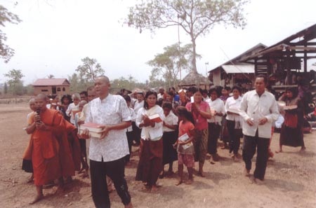 ក្រោយពីប្រារឰធ្វើពិធីសូត្រមន្ត ថ្វាយបង្គំព្រះគម្ពីរព្រះត្រៃយ៍បីដក់ នមាសសិការសីល និងឧទ្ទិសរួចមក កម្មវិធីដង្ហែព្រះគម្ពីរព្រះត្រៃយ៍បី៎ដក់ បានចាប់ផ្តើមដោយមានព្រះតេជគុណ កែវ មនោ និងលោកអាចារ្យ គណៈកម្មាធិការវត្ត លោកមេឃុំ មេភូមិ ព្រមទាំងព្រះសង្ឃ លោកតាជី យាយជី និងពុទ្ធបរិស័ទ្ធទាំងប្រុស ទាំងស្រី ទាំងចាស់ក្មេង ចូលរួមដង្ហែយ៉ាងអធិកអធម សប្បាយរីករាយក្រៃលែង ទោះបីជាស្ថិតនៅក្រោមកំដៅព្រះអាទិត្យ យ៉ាងណាក្តី ប៉ុន្តែភាពរីករាយនៅមានជានិច្ច ដោយម្នាក់ៗពេញដោយជំនឿលើព្រះគម្ពីរព្រះត្រៃយ៍បីដកល់ដែលជា សាសនារបស់រដ្ឋ ។ កម្មវិធីនេះបានបញ្ចប់ដោយភាពរីករាយក្រៃលែង ៕