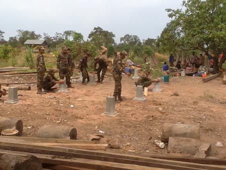 ឧត្តមសេនីយ៍ត្រី ប៊ុន ចាន់ថា មេបញ្ជារការរងកងពលធំ អន្តរាគមន៍លេខ២អោយដឹងថាកងកម្លាំងយោធាមកជួយដល់ប្រជាពលរដ្ឋ មានចំនួន ១១០នាក់ ក្នុងកងពលធំអន្តរាគមន៍លេខ២ កម្លាំងយោធាកងពលតូចថ្មើរជើងលេខ៤២ វរៈ ៤២៤ និងវរៈ៤២១ ដឹកនាំដោយលោក វរះសេនីយ៍ ត្រី សិន សានផងដែរ ហើយកម្លាំង២នាក់បានរងរបួសផងដែរ។មិនតែប៉ុណ្ណោះមានកងកំលាំងនគ បាលកាពារព្រំដែនគោក រួមមាន២វរៈ.មាន វរៈ ៧០២ និងវរៈ ៩០៥ ដឹកនាំ ដោយលោកវរៈសេនីយ៍ ឯក ហង្ស. បូរ ស្នងការរងនគរបាលជាតិខេត្តឧត្តរមានជ័យផងដែរ ។ ការសាងសង់លំនៅដ្ឋានប្រជាពលរដ្ឋ ដែលរងគ្រោះដោយខ្យល់ព្យុះកន្ត្រាក់ ប៉ះពាល់ចំនួន ១៨៦ ខ្នង ក្នុងនោះ៥៤ ខ្នង រងការខូចខាតធ្ងន់ធ្ងរ និង១៣២ខ្នងខូចខាតធូរស្រាលត្រូវសាងសង់ឡើងវិញអោយប្រជាពលរដ្ឋចូល ស្នាក់នៅវិញបានស្រួលហើយ។