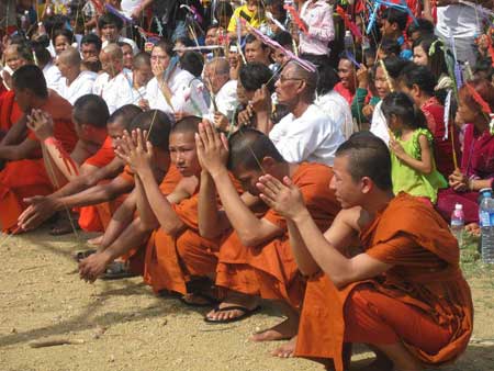 កម្មវិធីនេះធ្វើនៅវត្តព្រំគីរីមរកតមិនឆ្ងាយពីច្រកទ្វា អន្តរជាតិព្រំ ខេត្តប៉ៃលិននោះទេ ស្ថិតក្នុងភូមិផ្សារព្រំ ឃុំស្ទឹងកាច់ ស្រុកសាលាក្រៅ ។ ព្រះគ្រូ វ៉ែន ចន្ទសុម៉ៃ ព្រះចៅអធិការវត្តព្រំគីរីមរកត បានមានសង្ឃដីកាឱ្យដឹងថាៈ ជារៀងរាលឆ្នាំវត្តព្រំគីរីមរកត តែងប្រារឰពិធីពូនភ្នំខ្សាច់ និងស្រង់ព្រះ ក្រោយវត្តនានាក្នុងខេត្តប៉ៃលិន ហើយធ្វើឱ្យមានការចាប់អារម្មណពីសំណាក់ពុទ្ធបរិស័ទ្ធ និងភ្ញៀវទេសចរណ៏ជាតិ-អន្តរជាតិ ដែលធ្វើដំណើរឆ្លងកាត់ទៅកាន់ប្រទេសថៃផងដែរ ។