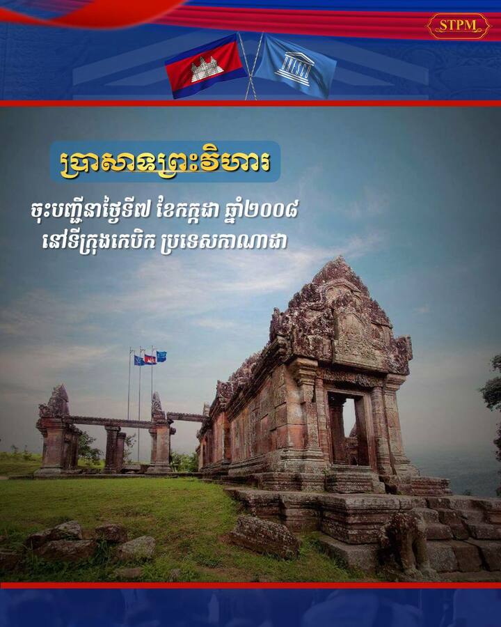 – ប្រាសាទព្រះវិហារ ចុះបញ្ជីនាថ្ងៃទី៧ ខែកក្កដា ឆ្នាំ២០០៨ នៅទីក្រុងកេបិក ប្រទេសកាណាដា