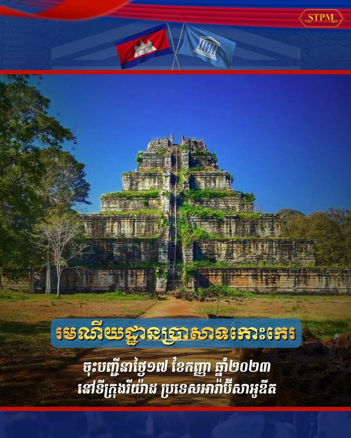 – រមណីយដ្ឋានប្រាសាទកោះកេរ ចុះបញ្ជីនាថ្ងៃ១៧ ខែកញ្ញា ឆ្នាំ២០២៣ នៅទីក្រុងរីយ៉ាដ ប្រទេសអារ៉ាប៊ីសាអូឌីត ។