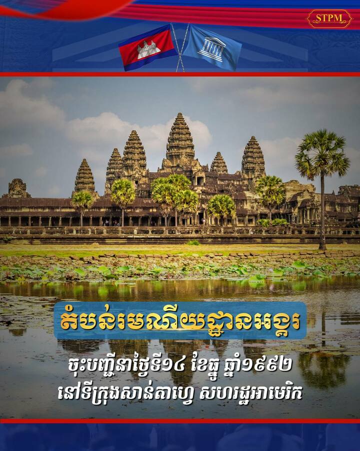 – តំបន់រមណីយដ្ឋានអង្គរ ចុះបញ្ជីនាថ្ងៃទី១៤ ខែធ្នូ ឆ្នាំ១៩៩២ នៅទីក្រុងសាន់តាហ្វេ សហរដ្ឋអាមេរិក