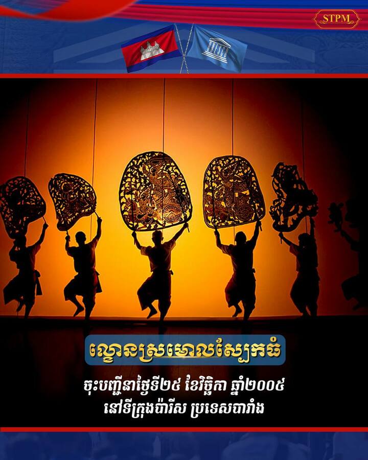 - ល្ខោនស្រមោលស្បែកធំ ចុះបញ្ជីនាថ្ងៃទី២៥ ខែវិច្ឆិកា ឆ្នាំ២០០៥ នៅទីក្រុងប៉ារីស ប្រទេសបារាំង