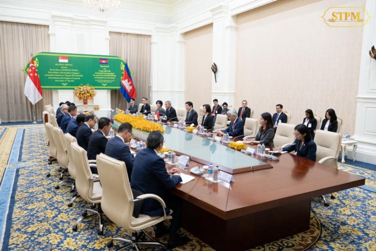 នាព្រឹក ថ្ងៃទី២ ខែកក្កដា ឆ្នាំ២០២៥, សម្តេចមហាបវរធិបតី ហ៊ុន ម៉ាណែត នាយករដ្ឋមន្ត្រីនៃព្រះរាជាណាចក្រកម្ពុជា បានជួបពិភាក្សាទ្វេភាគីជាមួយ ឯកឧត្តម Lawrence Wong នាយករដ្ឋមន្ត្រី នៃសាធារណរដ្ឋសិង្ហបុរី នៅវិមានសន្តិភាព ក្នុងឱកាសដែលឯកឧត្តមនាយករដ្ឋមន្ត្រីដឹកនាំគណៈប្រតិភូ អញ្ជើញបំពេញទស្សនកិច្ចផ្លូវការ នៅព្រះរាជាណាចក្រកម្ពុជា។