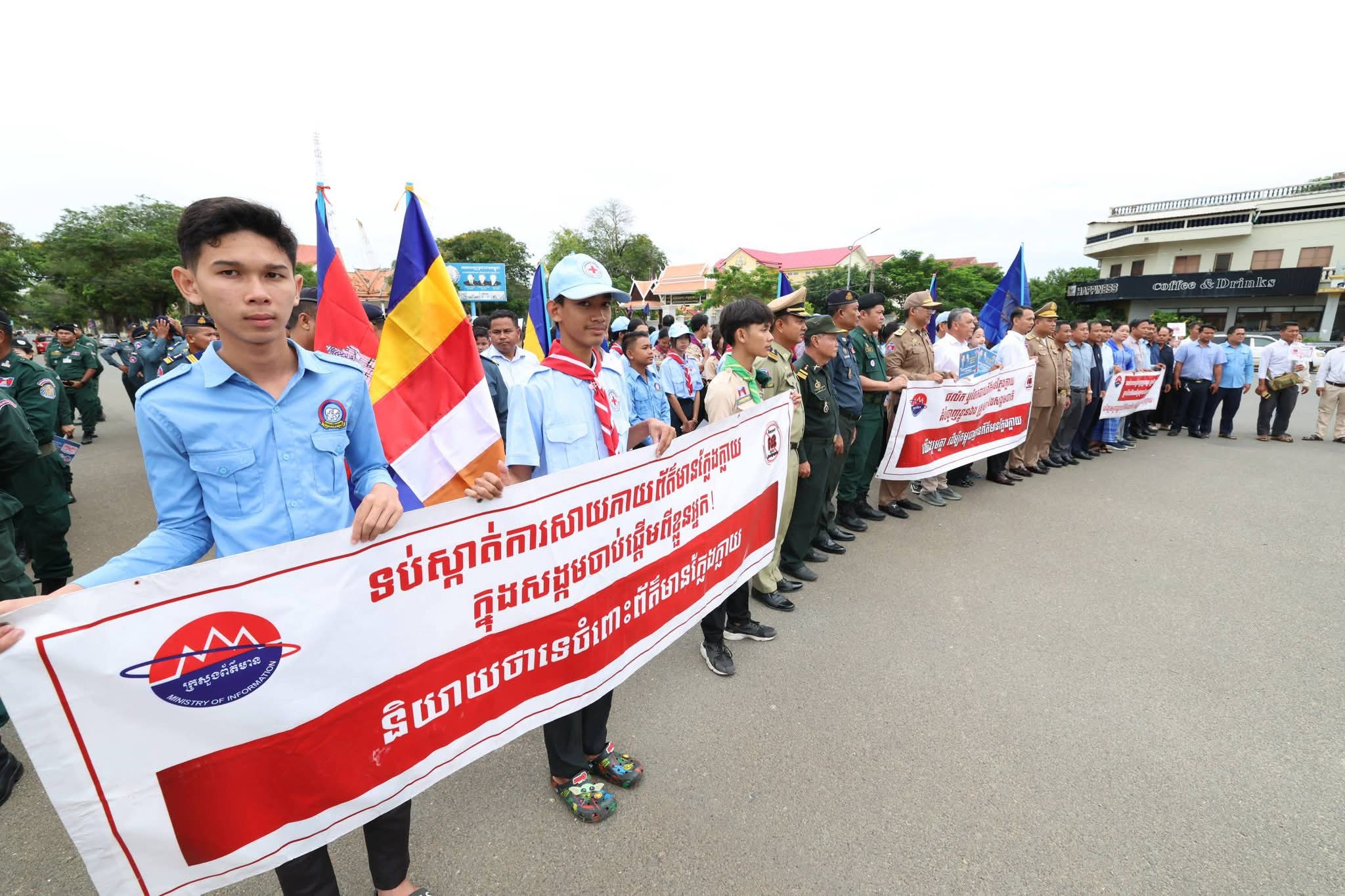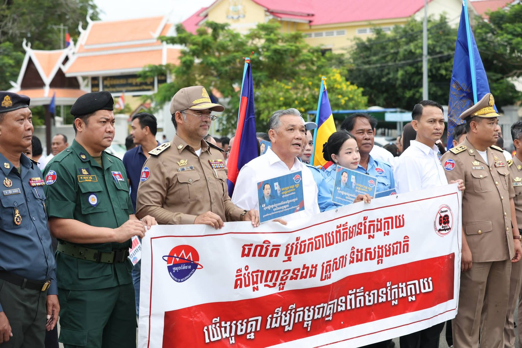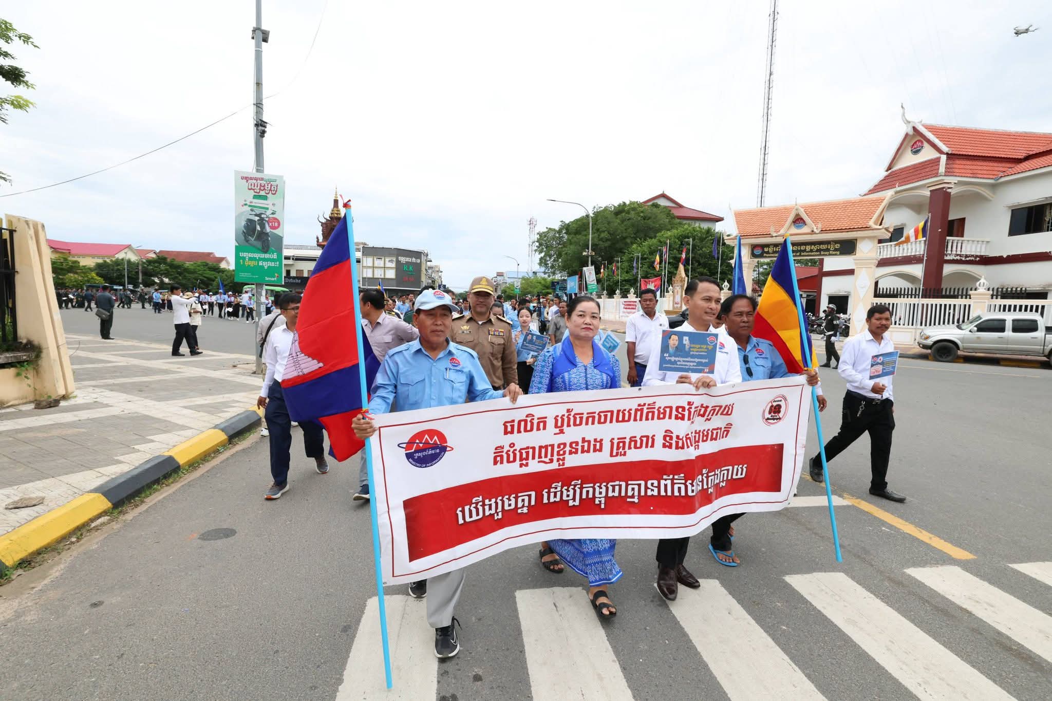(ខេត្តស្វាយរៀង): យុទ្ធនាការ « និយាយថាទេចំពោះព័ត៌មានក្លែងក្លាយ » Say No To Fake News ត្រូវបានអាជ្ញាធរដែន មន្ត្រីរាជការ កងនគរបាល អាវុធហត្ថ កងយោធពលខេមរភូមិន្ទ កាកបាទក្រហមកម្ពុជា សសយក ខេត្ត និងសិស្សានិសិស្ស បានប្រារព្ធពិធីបើកយុទ្ធនាការផ្សព្វផ្សាយនៅព្រឹកថ្ងៃទី២៦ ខែកញ្ញា ឆ្នាំ២០២៥ នាទីរួមខេត្តស្វាយរៀង ក្រោមអធិបតីភាព ឯកឧត្តម ឡុង សេង អនុរដ្ឋលេខាធិការក្រសួងព័ត៌មាន ទទួលបន្ទុកសម្របសម្រួលជាមួយមន្ទីរព័ត៌មានខេត្តស្វាយរៀង និង លោក ម៉ែន អេង អភិបាលរង នៃគណៈអភិបាលខេត្តស្វាយរៀង។