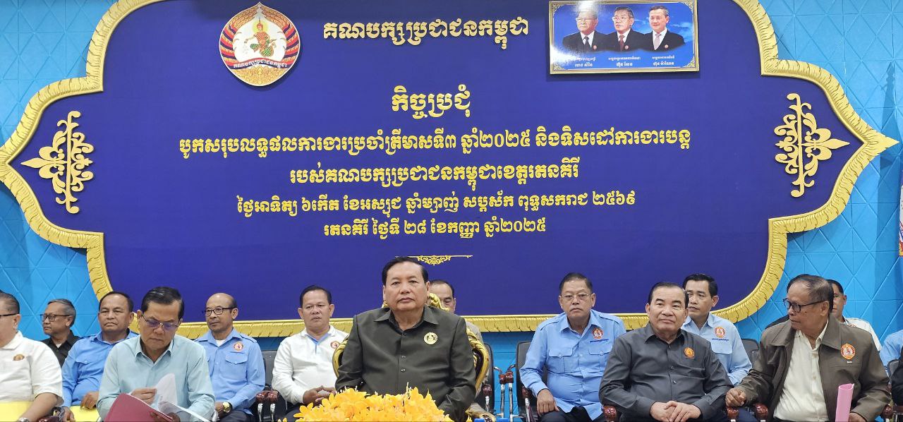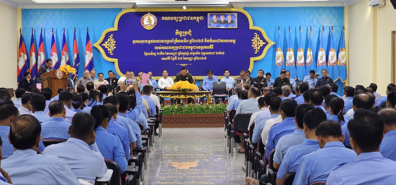 (រតនគិរី)៖ នាយឧត្តមសេនីយ៍ ជៀង អំ សមាជិកគណៈកម្មាធិការកណ្តាល និងជាប្រធានក្រុមការងារគណបក្សចុះមូលដ្ឋានខេត្តរតនគិរី នៅព្រឹកថ្ងៃទី២៨ ខែកញ្ញា ឆ្នាំ២០២៥ បានអញ្ជើញជាអធិបតីក្នុងកិច្ចប្រជុំបូកសរុបលទ្ធផលការងារប្រចាំត្រីមាសទី៣ និងលើកទិសដៅការងារបន្តរបស់គណបក្សប្រជាជនកម្ពុជាខេត្តរតនគិរី។