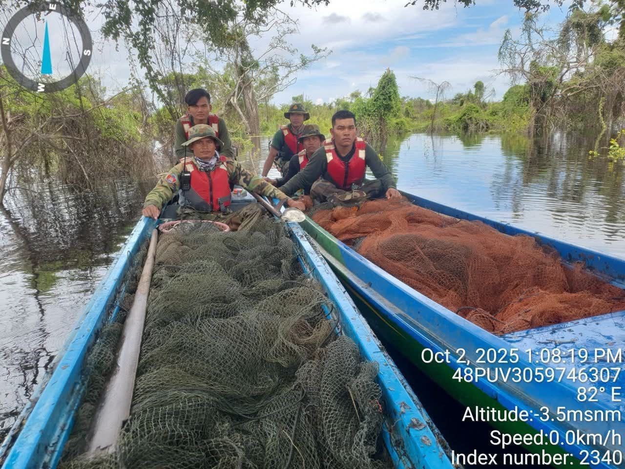 នៅយប់ថ្ងៃទី៣ ខែតុលា ឆ្នាំ២០២៥ វេលាម៉ោង២ៈ៣០នាទីយប់ ឧត្តមសេនីយ៍ទោ សេង ធារិន ប្រធានគណៈបញ្ជាការដឹកនាំបង្រ្កាបបទលើ្មសនេសាទលើផ្ទៃបឹងទន្លេសាប បានចាត់តាំងកម្លាំងអង្គភាព ចំណុះយោធភូមិភាគទី៥ ដឹកនាំដោយវរសេនីយ៍ទោ ស វិបុល សហការជាមួយកម្លាំងតំបន់ប្រតិបត្តិការសឹករងកំពង់ឆ្នាំង និងកម្លាំងការិយាល័យទី២ កងទ័ពជើងគោក ចុះប្រតិបត្តិការបង្រ្កាបការជួញដូរ និងដឹកលៀសដោយខុសច្បាប់ ចំនួន ៣០តោន ស្ថិតនៅក្នុងភូមិសាស្រ្តស្រុកស្ទោង ខេត្តកំពង់ធំ។
