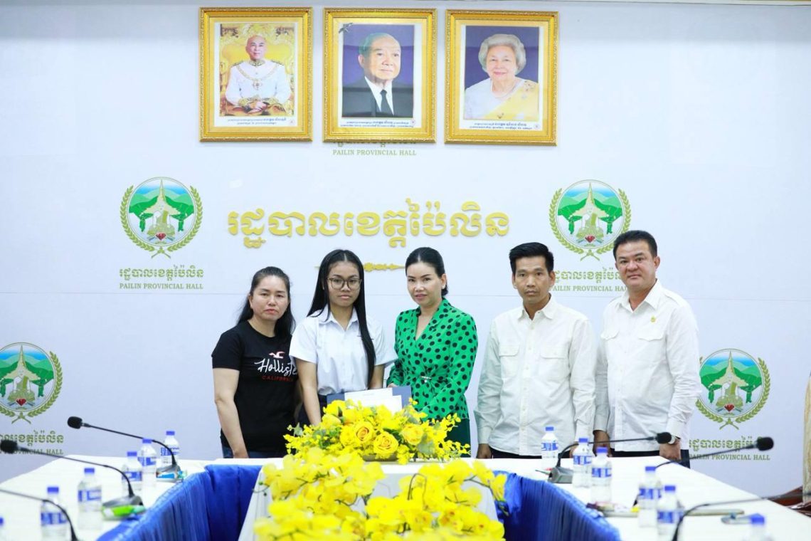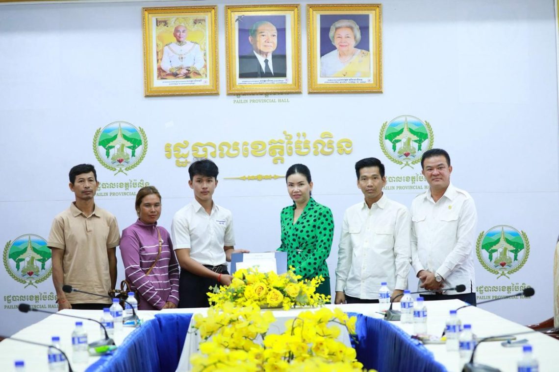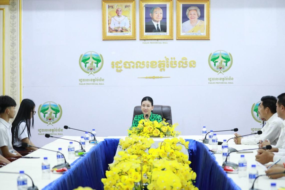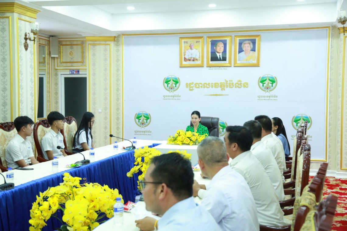 ប៉ៃលិន៖ ថ្ងៃទី១១ ខែតុលា ឆ្នាំ២០២៥ លោកជំទាវបណ្ឌិត បាន ស្រីមុំ អភិបាល នៃគណៈអភិបាលខេត្តប៉ៃលិន បានអញ្ជើញជួបសំណេះសំណាល និងផ្តល់រង្វាន់លើកទឹកចិត្តដល់សិស្សប្រឡងជាប់ សញ្ញាបត្រមធ្យមសិក្សាទុយិភូមិ ឆ្នាំសិក្សា២០២៤-២០២៥ ដែលទទួលបាននិទ្ទេស A។