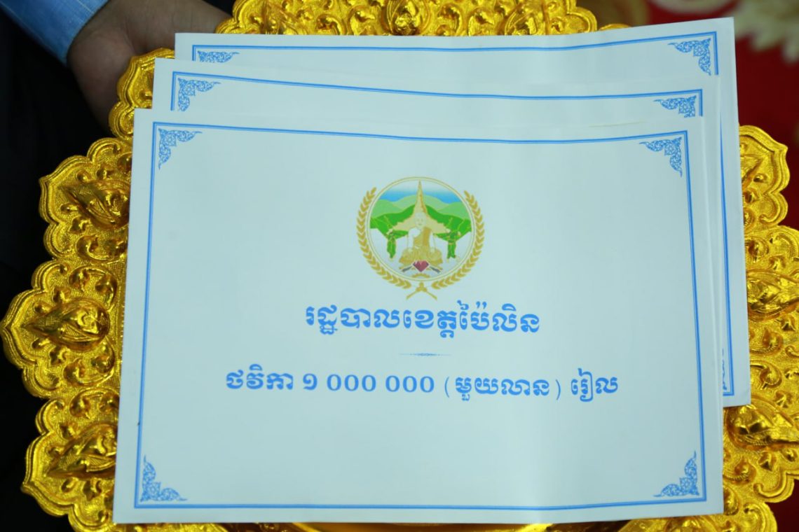 សូមបញ្ជាក់ថា៖ លោកជំទាវបណ្ឌិត បាន ស្រីមុំ អភិបាល នៃគណៈអភិបាលខេត្តប៉ៃលិន បានជូនរង្វាន់លើកទឹកចិត្ត ដល់សិស្ស ជាប់និទ្ទេស A ចំនួន ៣នាក់ ដោយក្នុងម្នាក់ៗទទួលបាន កុំព្យូទ័រ ១គ្រឿង, និងថវិកាចំនួន ១លានរៀល ផងដែរ៕សេន ត