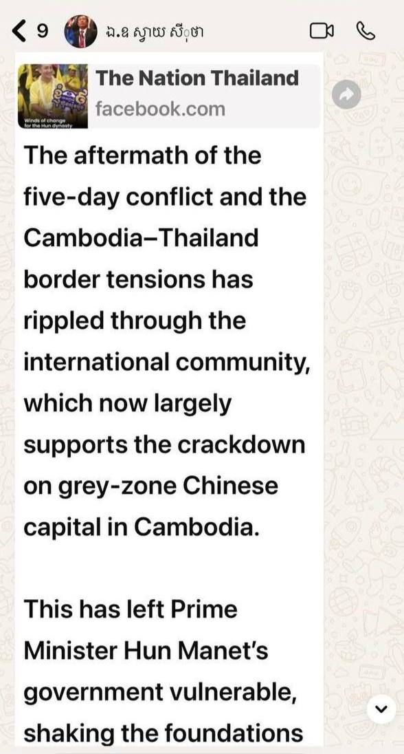 ខ្ញុំចង់ប្រាប់លោកអ្នកតាមដានឲ្យបានដិតដល់នូវអ្វីដែលនឹងកើតឡើងក្រោយរដ្ឋាភិបាលអាយុ៤ខែ? ក្រោយរំលាយសភានិងក្រោយការបោះឆ្នោតនាដើមឆ្នាំ២០២៦។ រឿងនៅកម្ពុជាពួកយើងចេះចាត់ចែងកិច្ចការខ្លួនឯងហើយ មិនចាំបាច់សរសេរបង្វែរសាច់រឿងពីថៃ មកកម្ពុជាទេ។ (បើលេងកុំខឹង បើខឹងកុំលេង)»៕