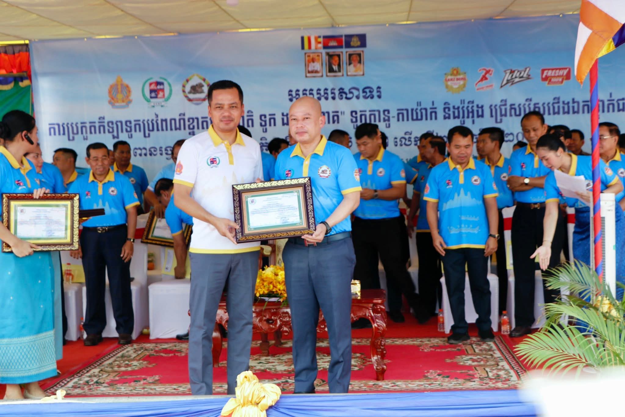 នៅរសៀលថ្ងៃអាទិត្យ៦រោច ខែមាឃ ឆ្នាំម្សាញ់ សប្តស័ក ព.ស២៥៦៩ ត្រូវនឹងថ្ងៃទី៨ ខែកុម្ភៈ ឆ្នាំ ២០២៦នេះ ឯកឧត្តម ម៉ែន វិបុល ប្រធានក្រុមប្រឹក្សាខេត្ត និងឯកឧត្តម ប៉េង ពោធិ៍សា អភិបាលនៃគណៈអភិបាលខេត្តស្វាយរៀង បានអញ្ជើញចូលរួមពិធីបិទការប្រកួតកីឡាទូកប្រពៃណីខ្នាតអន្តរជាតិ ទូក ង ទូកនាគ ទូកផ្កាចារ ទូកកានូ-កាយ៉ាក់ និងទូករ៉ូអ៊ីង ក្នុងព្រឹត្តិការណ៍កីឡាជាតិពានរង្វាន់ ឯកឧត្តមអភិសន្តិបណ្ឌិត ស សុខា” លើកទី២ ឆ្នាំ២០២៥ ក្រោមអធិបតីភាពដ៏ខ្ពង់ខ្ពស់ឯកឧត្តមអភិសន្តិបណ្ឌិត ស សុខា ឧបនាយករដ្ឋមន្រ្តី រដ្ឋមន្ត្រីក្រសួងមហាផ្ទៃ និងជាប្រធានសហព័ន្ធកីឡាទូកកានូ និងរ៉ូអ៉ីងកម្ពុជា។