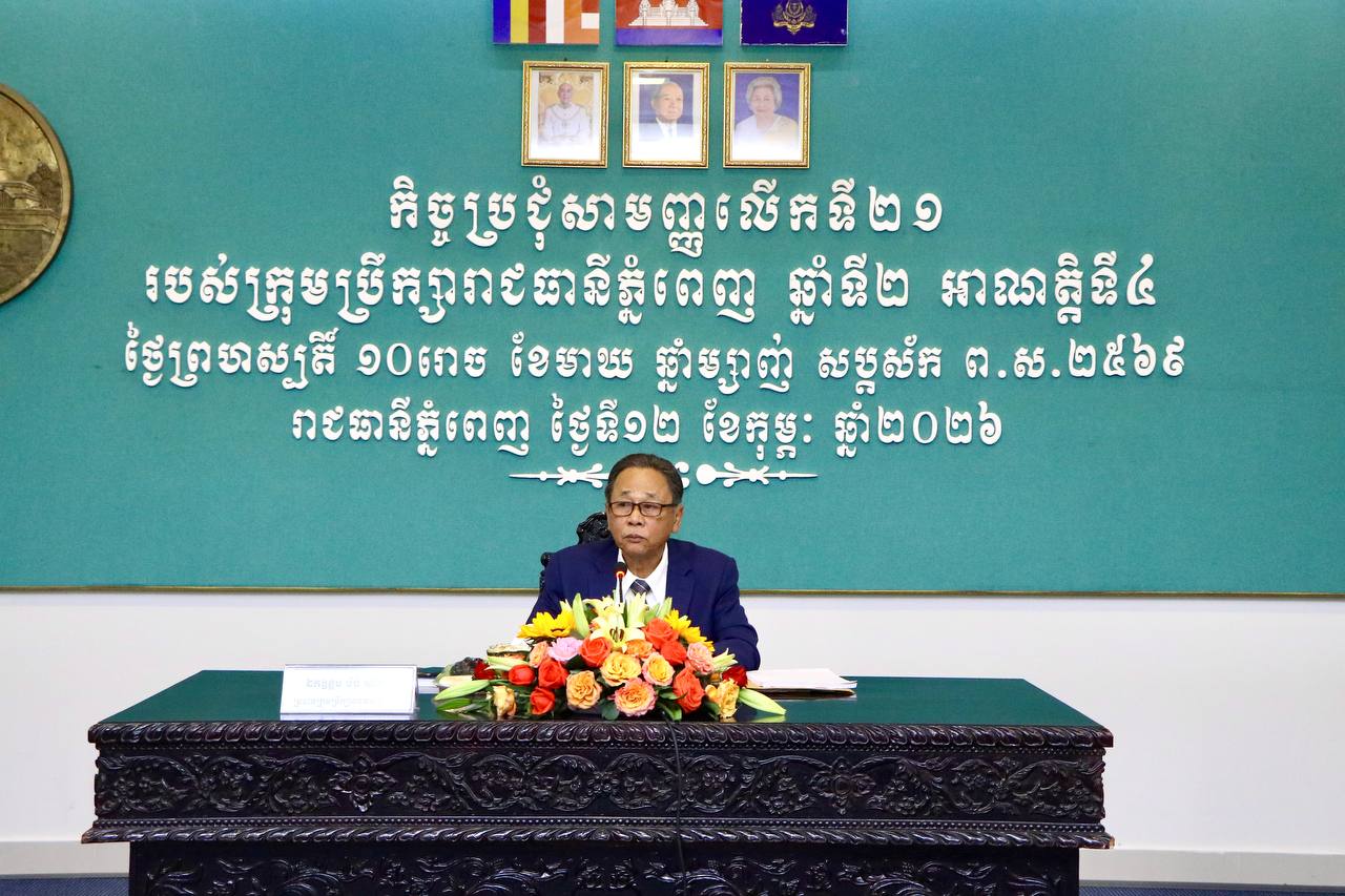 (ភ្នំពេញ)៖ ក្នុងកិច្ចប្រជុំសាមញ្ញលើកទី២១ របស់ក្រុមប្រឹក្សារាជធានីភ្នំពេញ អាណត្តិទី៤ ក្រោមវត្តមានលោក ម៉ប់ សារិន ប្រធានក្រុមប្រឹក្សារាជធានីភ្នំពេញ នាព្រឹកថ្ងៃទី១២ ខែកុម្ភៈ ឆ្នាំ២០២៦ លោក ឃួង ស្រេង អភិបាលរាជធានីភ្នំពេញ បានជំរាបជូនក្រុមប្រឹក្សារាជធានី អំពីការងាររបស់រដ្ឋបាលរាជធានី ក្នុងការទប់ស្កាត់គ្រោះអគ្គិភ័យ ការថែរក្សាសន្តិសុខ សុវត្ថិភាព ការរៀបចំសណ្តាប់ធ្នាប់សាធារណៈ ការផ្តល់សេវាជូនប្រជាពលរដ្ឋ ដោយបានបង្ក្រាបបទល្មើសគ្រប់ប្រភេទ រហូតរដ្ឋបាលរាជធានីទទួលបានការជឿទុកចិត្តពីប្រជាពលរដ្ឋយ៉ាងខ្លាំង។