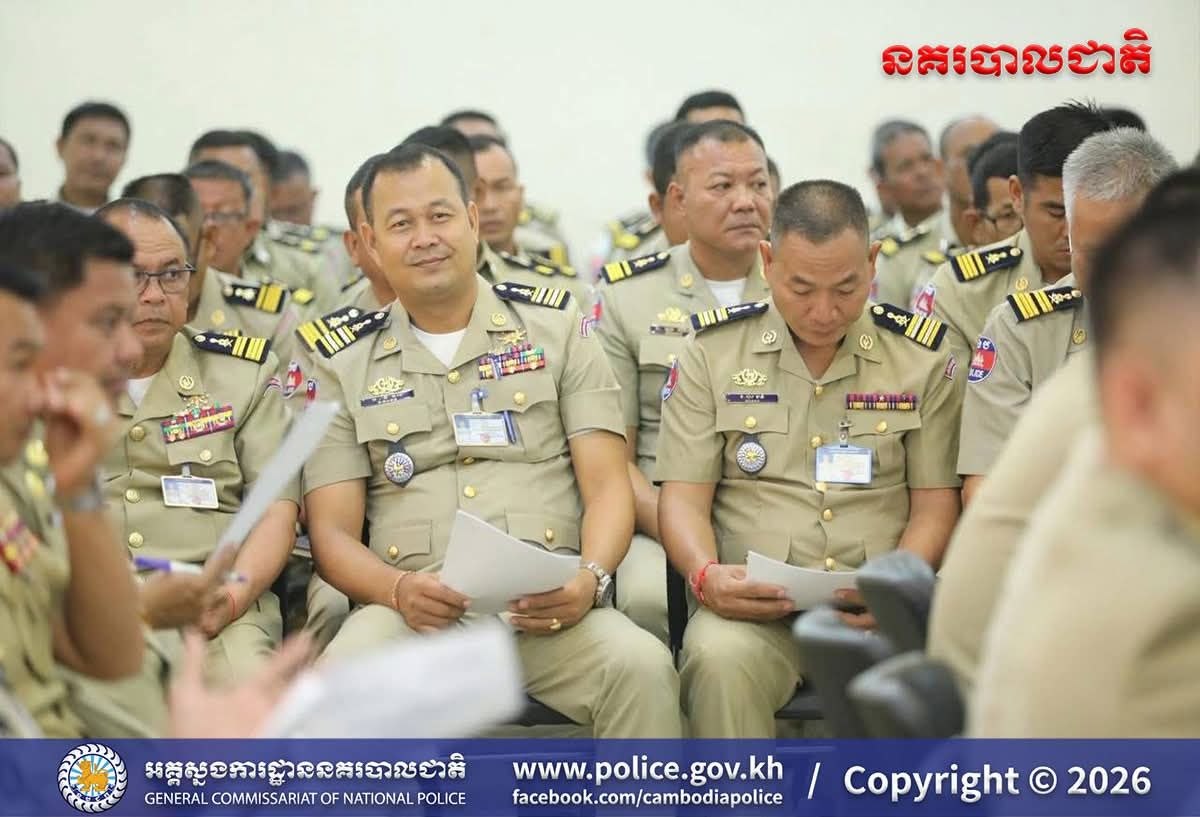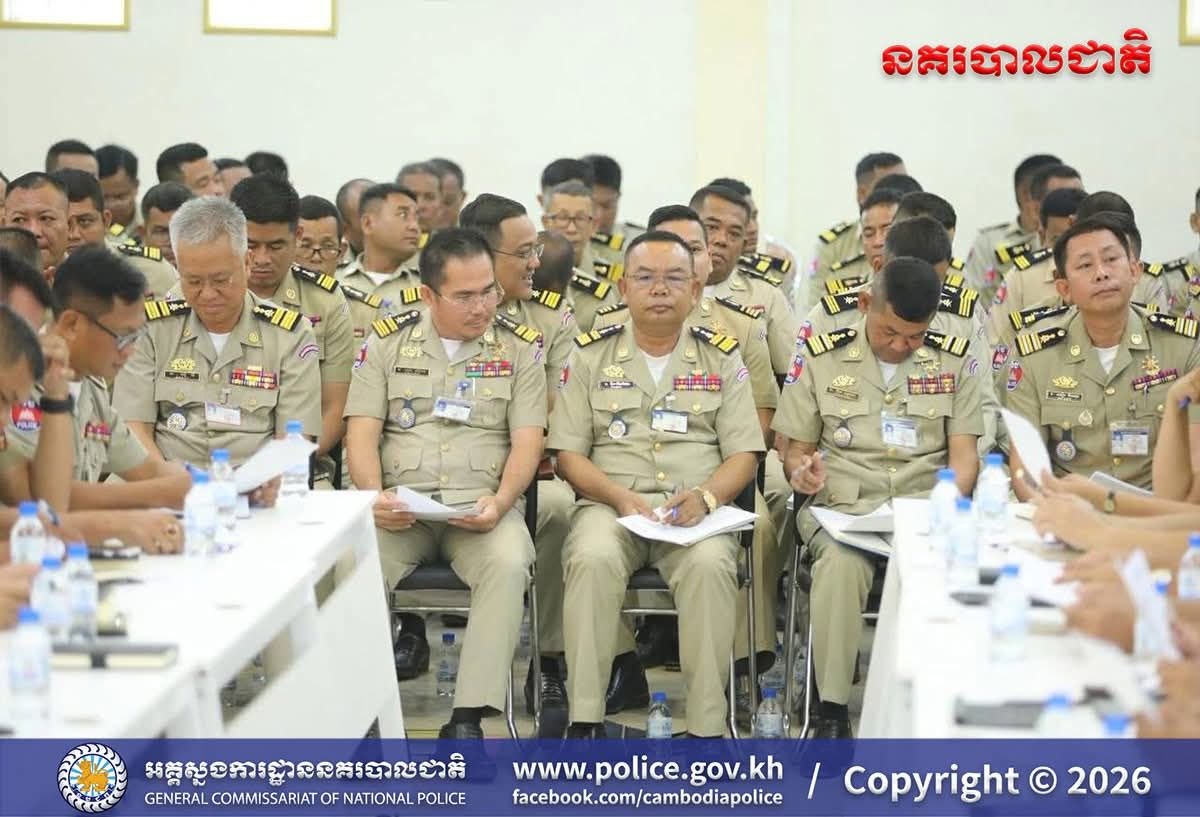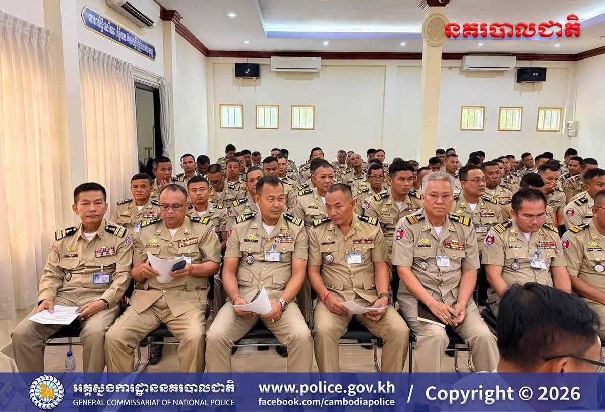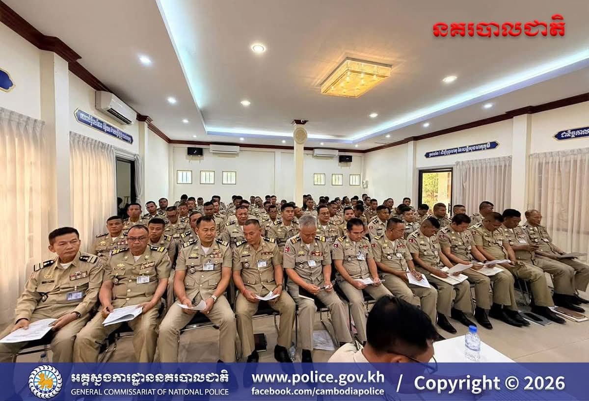 បន្ទាយមានជ័យ៖ អនុវត្តតាមការដឹកនាំបញ្ជាដ៏ខ្ពង់ខ្ពស់របស់ ឯកឧត្តម នាយឧត្តមសេនីយ៍ ស ថេត អគ្គស្នងការនគរបាលជាតិ នៅថ្ងៃទី២៤ ខែមេសា ឆ្នាំ២០២៦ នេះ លោកឧត្តមសេនីយ៍ត្រី សឿម សារិទ្ធ ស្នងការនៃស្នងការដ្ឋាននគរបាលខេត្តបន្ទាយមានជ័យ បានអញ្ជើញដឹកនាំ កិច្ចប្រជុំបូកសរុបសភាពការណ៍ និងលទ្ធផលកិច្ចប្រតិបត្តិការប្រចាំខែមេសា ឆ្នាំ២០២៦ (គិតចាប់ពីថ្ងៃទី២០ ខែមីនា ឆ្នាំ២០២៦ ដល់ថ្ងៃទី១៩ ខែមេសា ឆ្នាំ២០២៦) និងដាក់ចេញទិសដៅអនុវត្តការងារសម្រាប់ខែបន្ទាប់ ដល់កងកម្លាំងនគរ បាលទូទាំងខេត្ត។