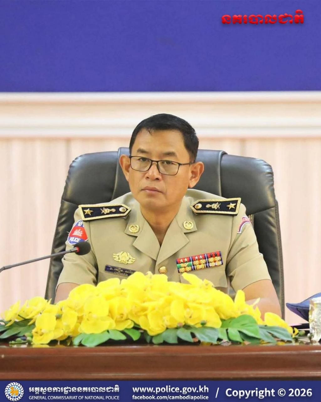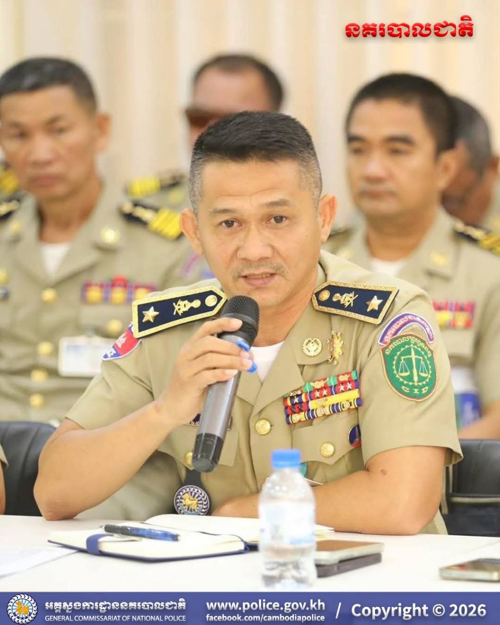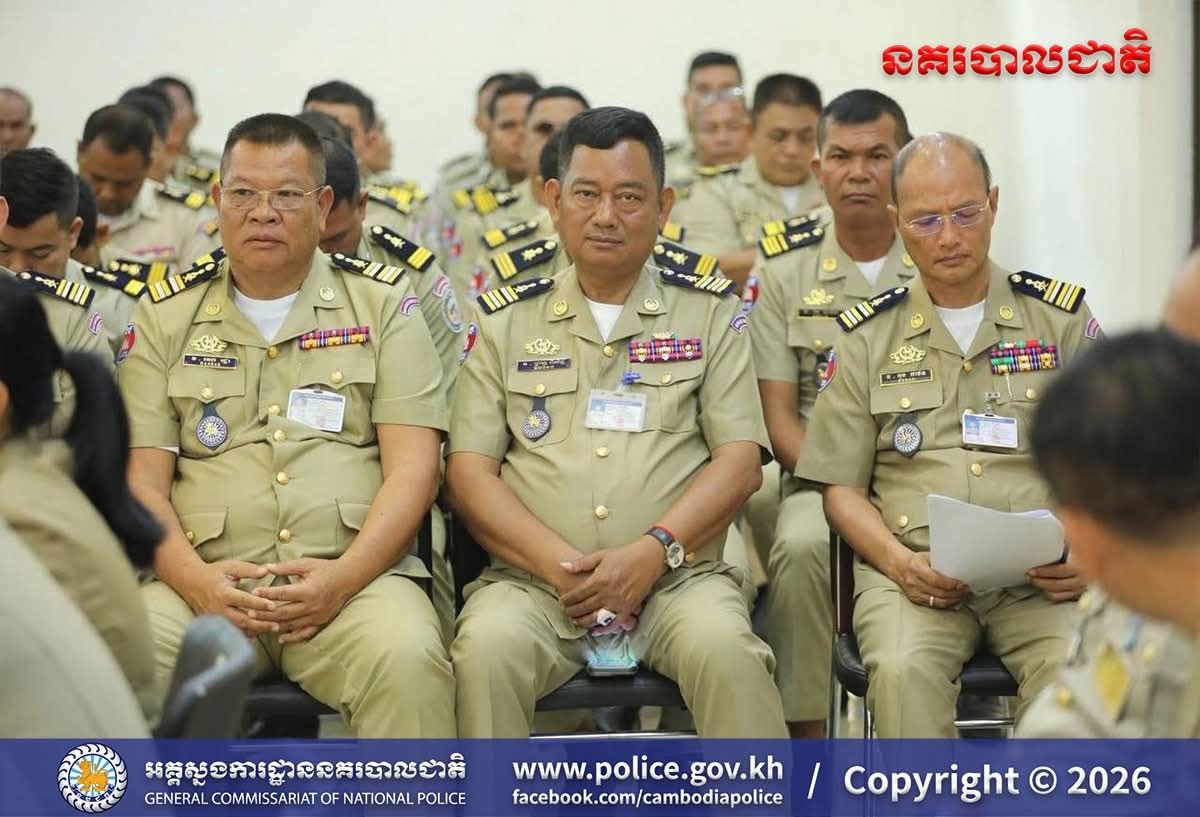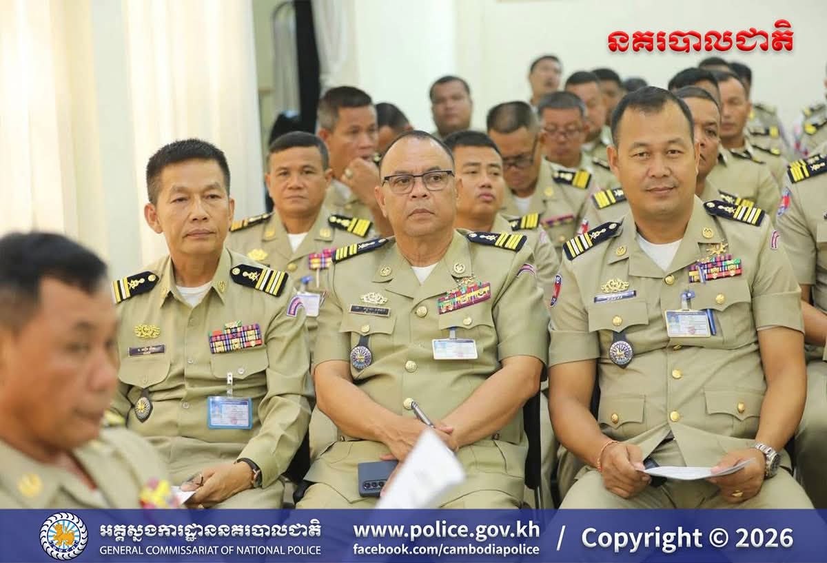 បន្ទាយមានជ័យ៖ អនុវត្តតាមការដឹកនាំបញ្ជាដ៏ខ្ពង់ខ្ពស់របស់ ឯកឧត្តម នាយឧត្តមសេនីយ៍ ស ថេត អគ្គស្នងការនគរបាលជាតិ នៅថ្ងៃទី២៤ ខែមេសា ឆ្នាំ២០២៦ នេះ លោកឧត្តមសេនីយ៍ត្រី សឿម សារិទ្ធ ស្នងការនៃស្នងការដ្ឋាននគរបាលខេត្តបន្ទាយមានជ័យ បានអញ្ជើញដឹកនាំ កិច្ចប្រជុំបូកសរុបសភាពការណ៍ និងលទ្ធផលកិច្ចប្រតិបត្តិការប្រចាំខែមេសា ឆ្នាំ២០២៦ (គិតចាប់ពីថ្ងៃទី២០ ខែមីនា ឆ្នាំ២០២៦ ដល់ថ្ងៃទី១៩ ខែមេសា ឆ្នាំ២០២៦) និងដាក់ចេញទិសដៅអនុវត្តការងារសម្រាប់ខែបន្ទាប់ ដល់កងកម្លាំងនគរ បាលទូទាំងខេត្ត។