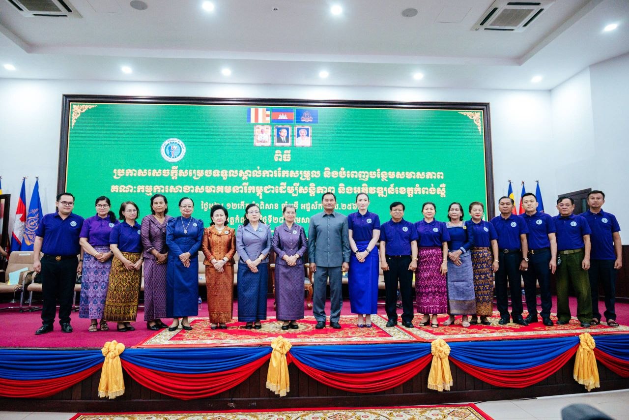 (កំពង់ស្ពឺ)៖ សម្តេចកិត្តិសង្គហបណ្ឌិត ម៉ែន សំអន ប្រធានសមាគមនារីកម្ពុជាដើម្បីសន្តិភាព និងអភិវឌ្ឍន៍ បានអញ្ជើញប្រកាសទទួលស្គាល់ និងកែសម្រួលសមាសភាពគណៈកម្មការសាខាសមាគមនារីកម្ពុជាដើម្បីសន្តិភាព និងអភិវឌ្ឍន៍ខេត្តកំពង់ស្ពឺ នៅថ្ងៃទី២៨ ខែមេសា ឆ្នាំ២០២៦។