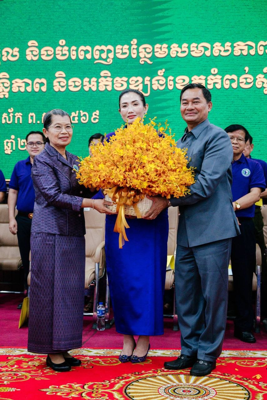 ក្នុងឱកាសនោះ សម្តេចកិត្តិសង្គហបណ្ឌិត ក៏បានសម្តែងនូវការអបអរសាទរចំពោះលោកស្រី ម៉េង វ៉ាន់ដានីន ដែលត្រូវបានតែងតាំងជាប្រធានកិត្តិយស និងលោកស្រី គា សុភូ ជាប្រធានប្រតិបត្តិសាខាសមាគមនារីខេត្តកំពង់ស្ពឺ។