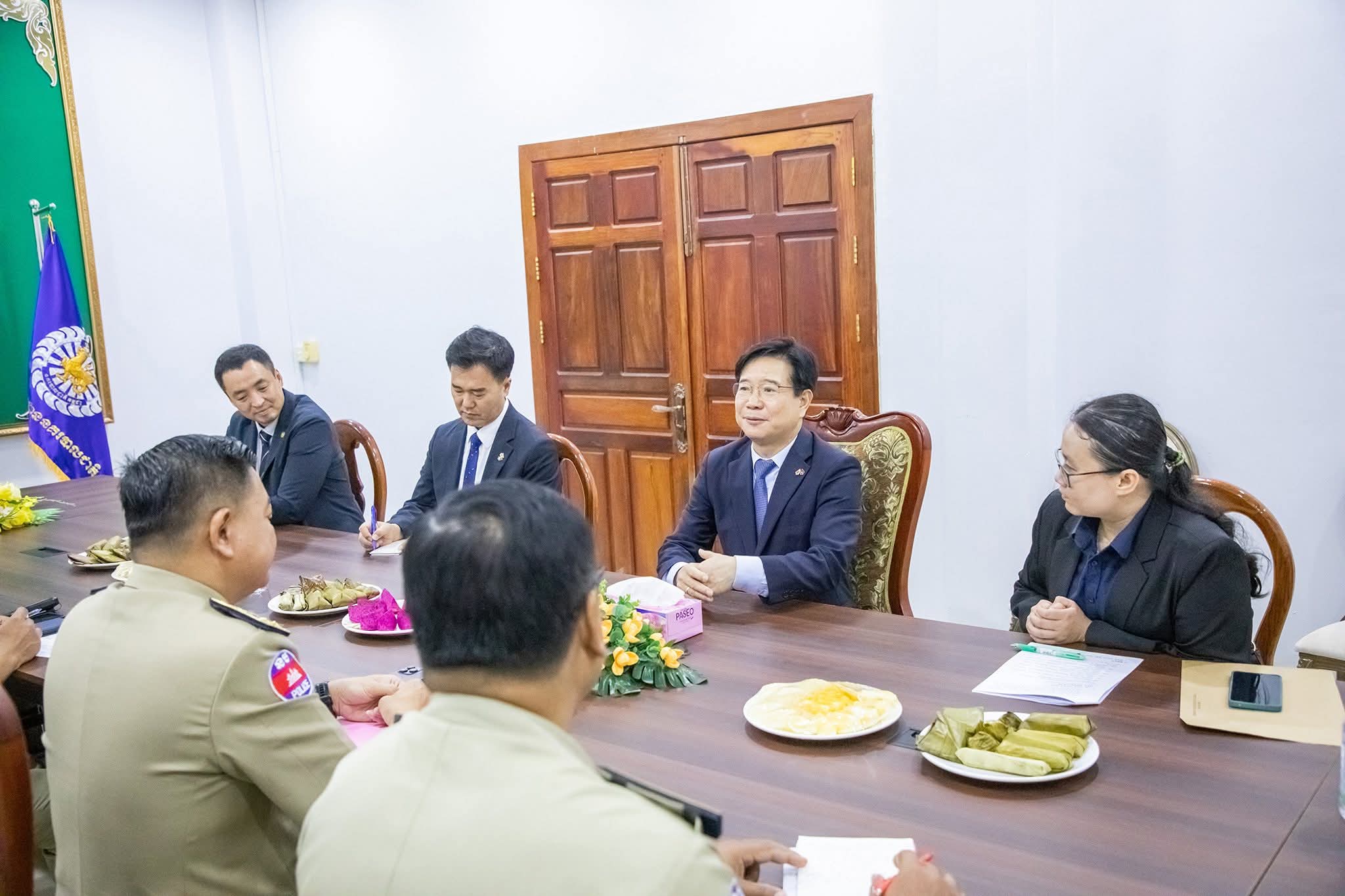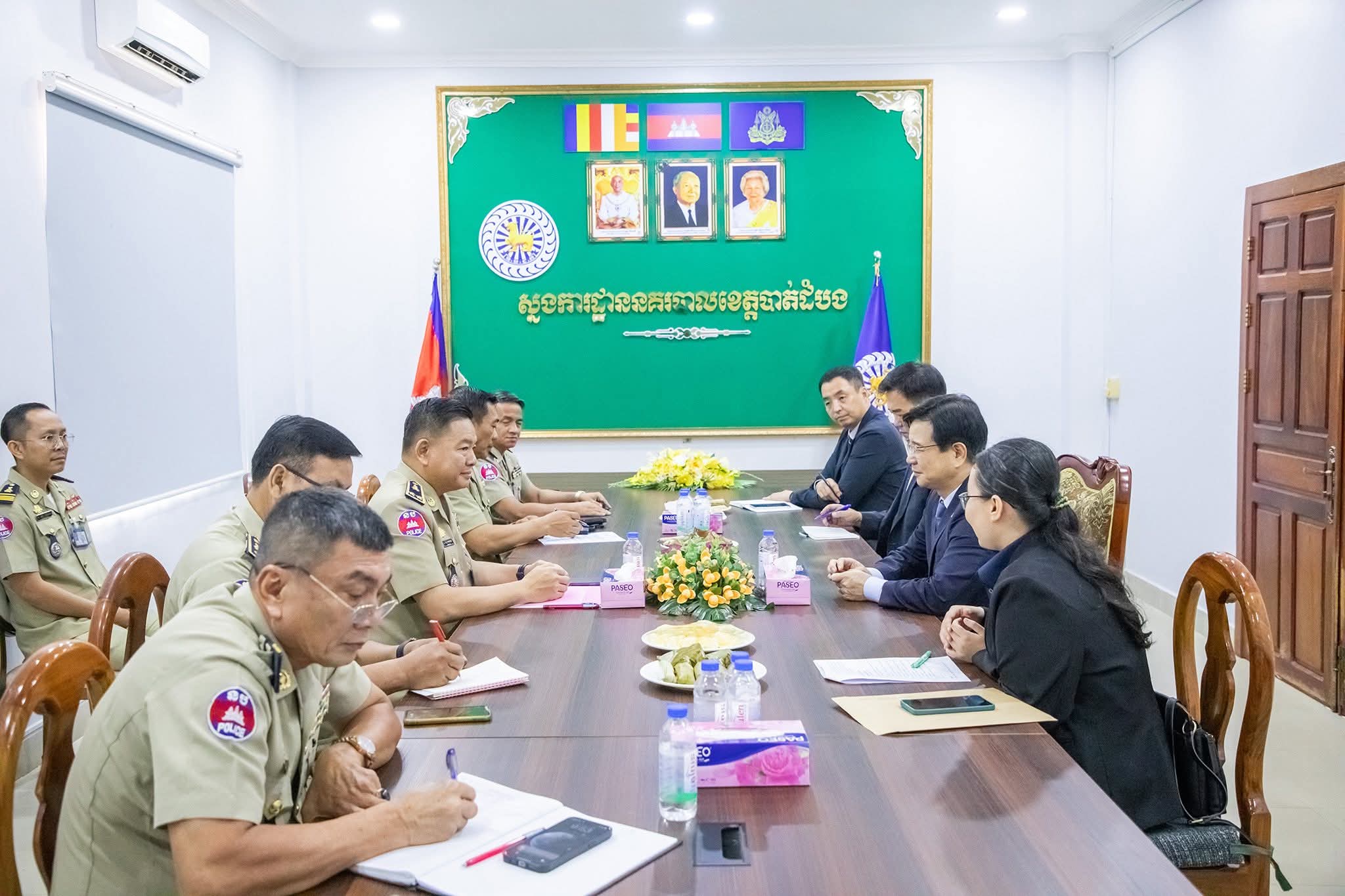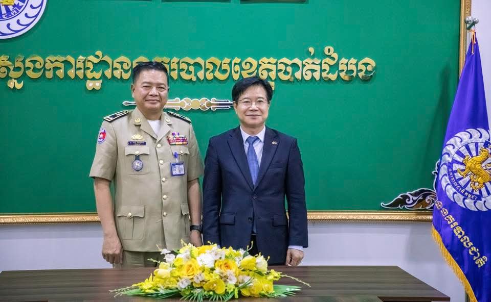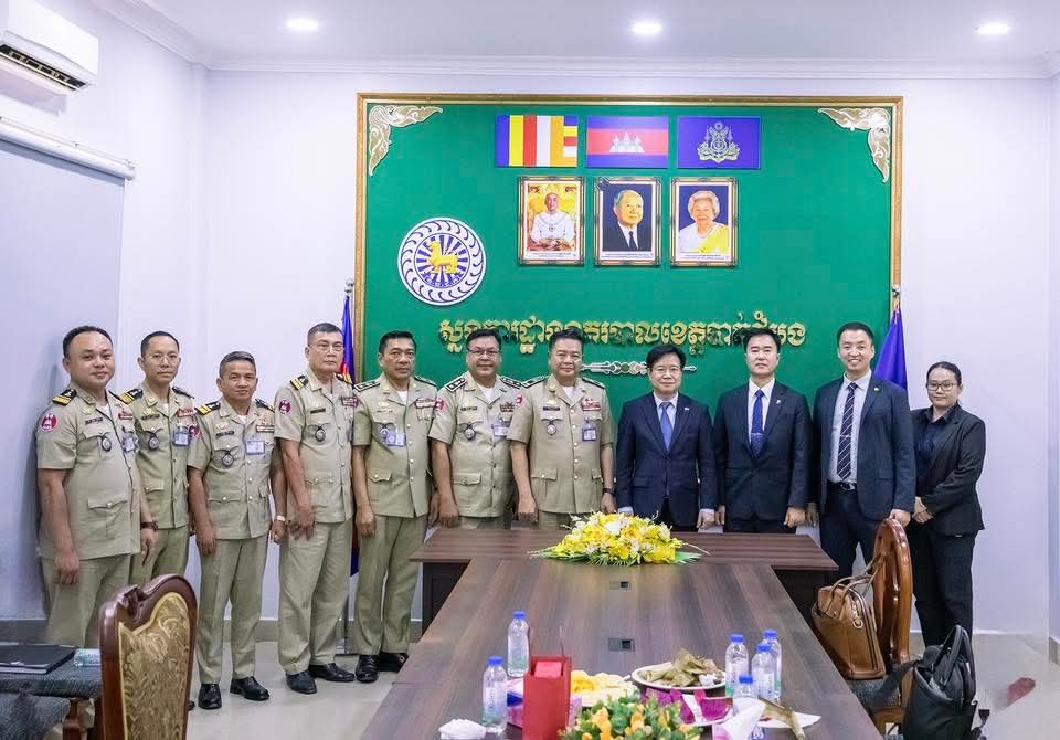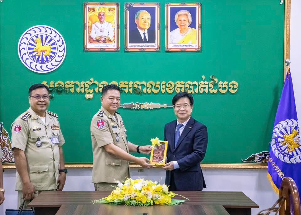 ខេត្តបាត់ដំបង៖ នៅថ្ងៃទី២៩ ខែមេសា ឆ្នាំ២០២៦ ដោយអនុវត្តតាមមតិណែនាំដ៏ខ្ពង់ខ្ពស់របស់ ឯកឧត្តម នាយឧត្តមសេនីយ៍ ស ថេត អគ្គស្នងការនគរបាលជាតិ លោកឧត្តមសេនីយ៍ទោ ដាញ់ អេងប៊ុនចាន់ ស្នងការ នៃស្នងការដ្ឋាននគរបាលខេត្តបាត់ដំបង រួមជាមួយលោក ស្នងការរងផែនការងារសន្តិសុខ, ផែនការងារសេនាធិការ, ផែនការងារនគរបាលព្រហ្មទណ្ឌ និងផែនការងារនគរបាលការពារព្រំដែនគោក ទទួលបដិ សណ្ឋារកិច្ច ឯកឧត្តម គីម ឆាងយ៉ុង (KIM CHAN GYONG) ឯកអគ្គរដ្ឋ ទូតសាធារណរដ្ឋកូរ៉េប្រចាំកម្ពុជា និងសហការី ដែលបានធ្វើដំណើរមកកាន់ស្នងការដ្ឋាននគរបាលខេត្តបាត់ដំបង ដើម្បីជួបសំ ដែងការគួរសម និងពិភាក្សាការងារ។