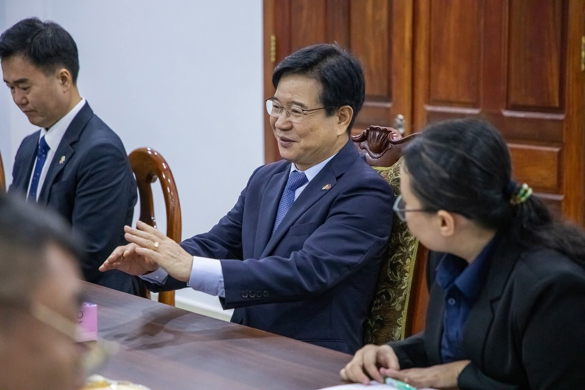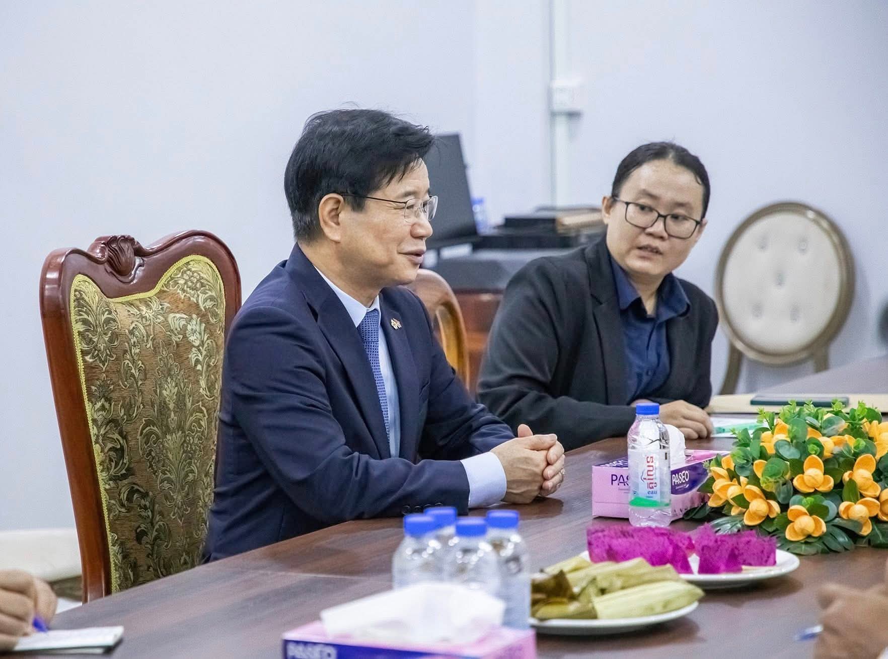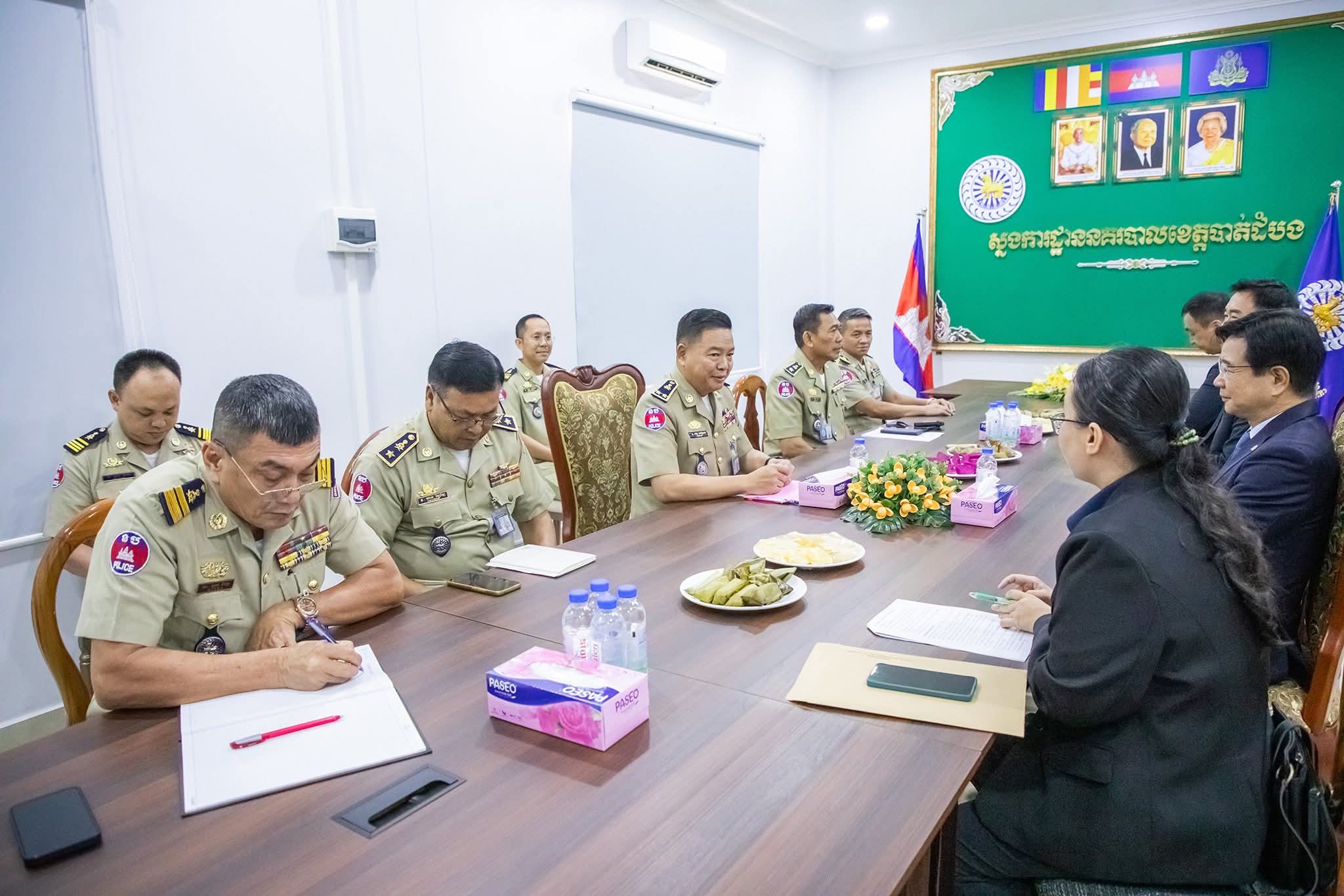 ខេត្តបាត់ដំបង៖ នៅថ្ងៃទី២៩ ខែមេសា ឆ្នាំ២០២៦ ដោយអនុវត្តតាមមតិណែនាំដ៏ខ្ពង់ខ្ពស់របស់ ឯកឧត្តម នាយឧត្តមសេនីយ៍ ស ថេត អគ្គស្នងការនគរបាលជាតិ លោកឧត្តមសេនីយ៍ទោ ដាញ់ អេងប៊ុនចាន់ ស្នងការ នៃស្នងការដ្ឋាននគរបាលខេត្តបាត់ដំបង រួមជាមួយលោក ស្នងការរងផែនការងារសន្តិសុខ, ផែនការងារសេនាធិការ, ផែនការងារនគរបាលព្រហ្មទណ្ឌ និងផែនការងារនគរបាលការពារព្រំដែនគោក ទទួលបដិ សណ្ឋារកិច្ច ឯកឧត្តម គីម ឆាងយ៉ុង (KIM CHAN GYONG) ឯកអគ្គរដ្ឋ ទូតសាធារណរដ្ឋកូរ៉េប្រចាំកម្ពុជា និងសហការី ដែលបានធ្វើដំណើរមកកាន់ស្នងការដ្ឋាននគរបាលខេត្តបាត់ដំបង ដើម្បីជួបសំ ដែងការគួរសម និងពិភាក្សាការងារ។