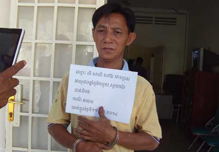 បាត់ដំបង ៖ បុរសម្នាក់ត្រូវជនរងគ្រោះ ៣ នាក់ប្តឹងពីបទឆបោកយកប្រាក់៣៦០ដុល្លា និង៥៥ម៉ឺនរៀល ធ្វើពន្ធនិងស្លាកលេខម៉ូតូ តាំងពីឆ្នាំ២០១២ រយៈពេល ២ ឆ្នាំហើយមិនបានទទួលប័ណ្ណស្លាកលេខម៉ូតូឡើយ ។ ជនសង្ស័យត្រូវកម្លាំងនគរបាលការិយាល័យព្រហ្មទ័ណ្ឌកំរិតស្រាល ហៅមកសាកសួរនៅការិយាល័យ ហើយឃាត់ខ្លួន កាលពីម៉ោង៨និង៤០នាទីព្រឹក ថ្ងៃទី១១ ខែធ្នូ ឆ្នាំ២០១៤ ។ ហើយជនសង្ស័យកសាងសំណុំរឿងបញ្ជូនទៅតុលាការ នាល្ងាចថ្ងៃដដែលចាត់ការតាមនិតិវិធី ។