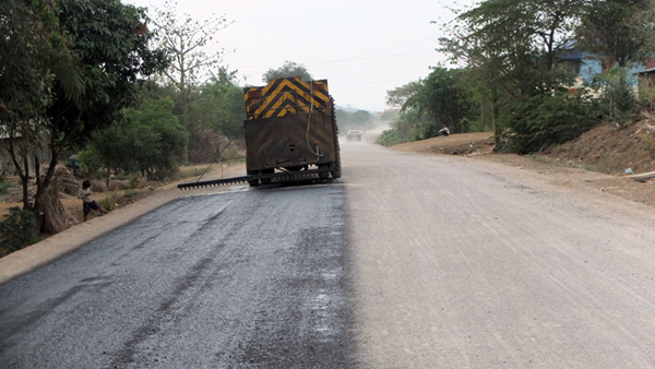 ខេត្តប៉ៃលិន ៖ លោក ឌិន គឹម ប្រធានមន្ទីរសាធារណការនិងដឹកជញ្ជូន ខេត្តប៉ៃលិនបានដឹកនាំក្រុមការងាររបស់ មន្ទីរ និងកម្មករយករថយន្តចុះសម្អាតដី នៅតាមបណ្តោយផ្លូវក្រវាត់ក្រុងដើម្បី រក្សាសណ្តាប់ធ្នាប់ និងរបៀប រៀបរយ ព្រមទាំងសោភណភាពក្រុង ដោយចាក់កៅស៊ូរោយថ្មប្រភេទ M19 ដើម្បីការពារទឹកកុំឱ្យច្រោះ និងប្រេះ ក្រោយពីមាន ការត្រួតពិនិត្យរបស់មន្ត្រីជំនាញរបស់ មន្ទីរសាធារណការខេត្ត កាលពីព្រឹកថ្ងៃទី២៧ ខែតុលា ឆ្នាំ ២០១៤។