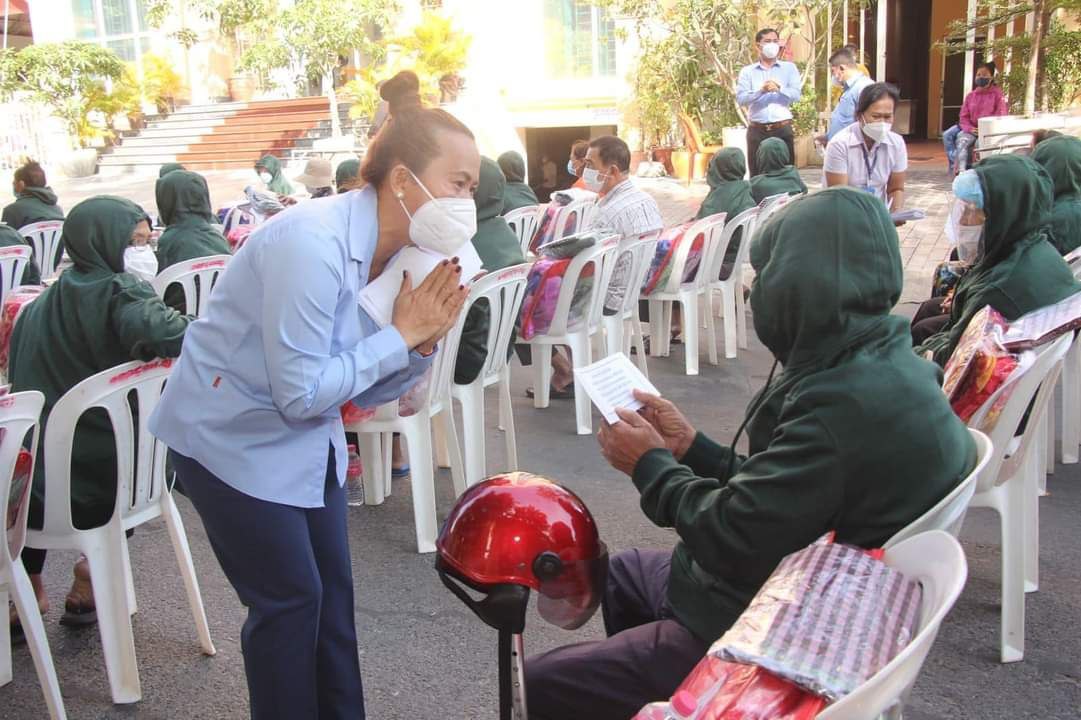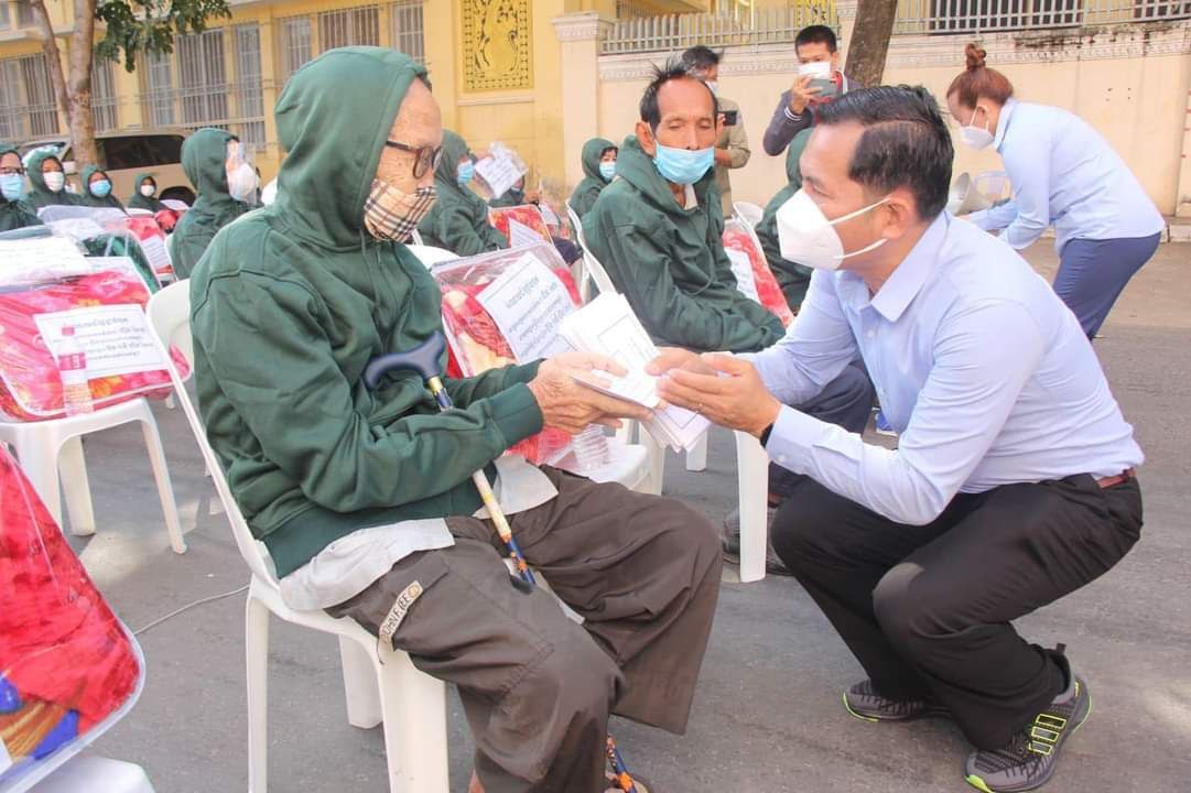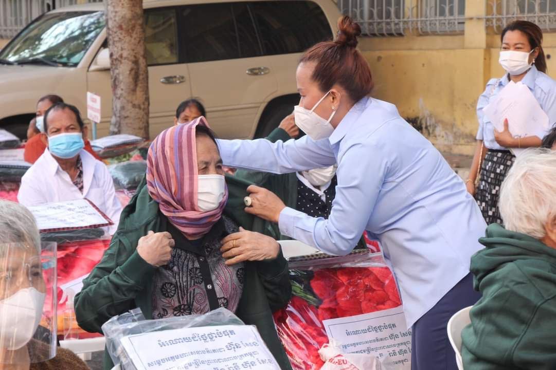 (ភ្នំពេញ):នៅថ្ងៃព្រហស្បត៍ ១៣រោច ខែកត្ដិក ឆ្នាំឆ្លូវ ត្រីស័ក ព.ស.២៥៦៥ ត្រូវនឹងថ្ងៃទី០២ ខែធ្នូ ឆ្នាំ២០២១ វេលាម៉ោង ០៩:០០នាទីព្រឹក លោក សុខ ពេញវុធ អភិបាល នៃគណៈអភិបាលខណ្ឌដូនពេញ និងភរិយា ព្រមទាំងមន្រ្ដីរាជការនៃរដ្ឋបាលខណ្ឌ បានអញ្ជើញនាំយកអំណោយដ៏ថ្លៃថ្លាបំផុតរបស់ សម្ដេចអគ្គមហាសេនាបតីតេជោ ហ៊ុន សែន នាយករដ្ឋមន្រ្តី នៃព្រះរាជាណាចក្រកម្ពុជា និង សម្តេចកិត្តិព្រឹទ្ធបណ្ឌិត ប៊ុន រ៉ានី ហ៊ុនសែន ប្រធានកាកបាទក្រហមកម្ពុជា តាមរយៈឯកឧត្តម ឃួង ស្រេង អភិបាល នៃគណៈអភិបាលរាជធានីភ្នំពេញ និងលោកជំទាវ មកប្រគល់ជូនប្រជាពលរដ្ឋក្នុងមូលដ្ឋានខណ្ឌដូនពេញ ដែលជាសមាជិក-សមាជិកាសមាគមន៍មនុស្សចាស់ ដែលមានជីវភាពក្រីក្រ សរុបចំនួន ១១០នាក់ ដោយក្នុងម្នាក់ៗទទួលបាន ថវិកាចំនួន ៥០,០០០រៀល និងឃិតមួយកញ្ចប់ ក្នុងនោះមានៈ ភួយចំនួន ០១, អាវរងាចំនួន ០១ និងក្រមាចំនួន ០១ ។