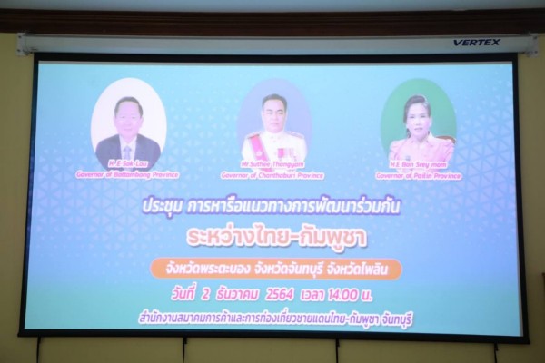 រសៀលថ្ងៃទី០២ ខែធ្នូ ឆ្នាំ២០២១ តបតាមការអញ្ជើញរបស់ភាគីប្រទេសថៃ អភិបាលខេត្តចន្ទបុរី, លោកជំទាវ បាន ស្រីមុំ អភិបាល នៃគណៈអភិបាលខេត្តប៉ៃលិន បានដឹកនាំគណៈប្រតិភូខេត្ត ចូលរួមកិច្ចប្រជុំលើកិច្ចសហប្រតិបត្តិការ រវាងខេត្តប៉ៃលិន និងខេត្តចន្ទបុរី ប្រទេសថៃ ។