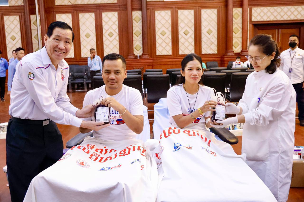 នាព្រឹកថ្ងៃអាទិត្យ ទី3 ខែសីហា ឆ្នាំ2025នេះ ឯកឧត្តមអភិសន្តិបណ្ឌិត ស សុខា ឧបនាយករដ្ឋមន្ត្រី រដ្ឋមន្ត្រីក្រសួងមហាផ្ទៃ និងជាប្រធានកិត្តិយសក្រុមការងារសហភាពសហព័ន្ធយុវជនកម្ពុជា វិស័យមហាផ្ទៃ ព្រមទាំងលោកជំទាវ កែ សួនសុភី ស សុខា បានអញ្ជើញចូលរួមបរិច្ចាគឈាម ក្នុងកម្មវិធីបរិច្ចាគឈាម ក្រោមប្រធានបទ “តំណក់ឈាមការពារជាតិយើង” ដែលរៀបចំដោយក្រុមការងារសហភាពសហព័ន្ធយុវជនកម្ពុជា វិស័យមហាផ្ទៃ ដោយមានការចូលរួមបរិច្ចាគឈាម ពីថ្នាក់ដឹកនាំ មន្ត្រីរាជការស៊ីវិល មន្ត្រីនគរបាលជាតិ មន្ត្រីពន្ធនាគារ ព្រះសង្ឃ សិស្ស និស្សិត ជាច្រើនអង្គ/នាក់ផងដែរ នៅសាលប្រជុំអគារ S នៃទីស្តីការក្រសួងមហាផ្ទៃ។