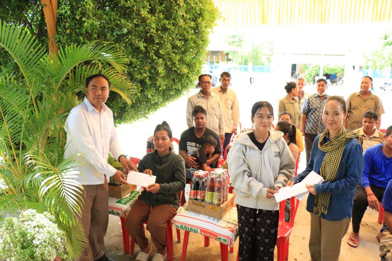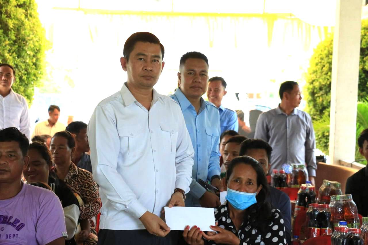 រសៀលថ្ងៃអង្គារ ទី១២ ខែសីហា ឆ្នាំ២០២៥ នេះ ឯកឧត្តមបណ្ឌិត ទូច វណ្ណៈ ប្រធានក្រុមការងាររាជរដ្ឋាភិបាល ចុះមូលដ្ឋានសង្កាត់ជើងទឹក ជាតំណាងដ៏ខ្ពង់ខ្ពស់ឯកឧត្តម ឡាំ ជា រដ្ឋមន្ត្រី ទទួលបន្ទុករដ្ឋលេខាធិការដ្ឋានកិច្ចការព្រំដែន និងជាប្រធានក្រុមការងាររាជរដ្ឋាភិបាលចុះមូលដ្ឋានក្រុងព្រៃវែង និងលោក ម៉ននី បណ្ឌិត អភិបាល នៃគណៈអភិបាលក្រុងព្រៃវែង ព្រមទាំងក្រុមការងារ បានអញ្ជើញចុះជួបសំណេះសំណាល និងប្រគល់អំណោយជូនពលករខ្មែរ ដែលវិលត្រឡប់ពីប្រទេសថៃ និងជនភៀសសឹក ចំនួន ៤២គ្រួសារ នៅក្នុងសង្កាត់ជើងទឹក ក្រុងព្រៃវែង ខេត្តព្រៃវែង។
