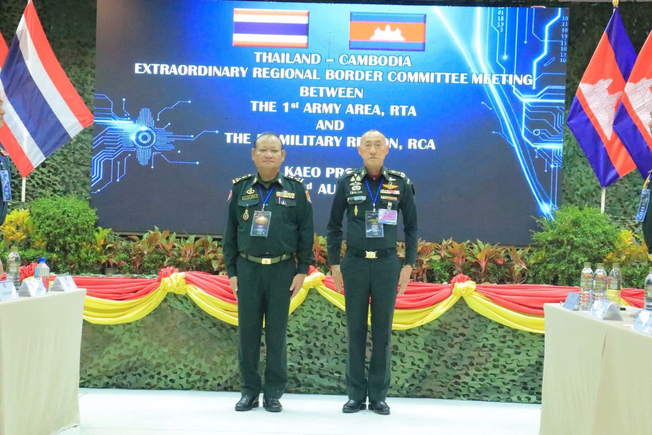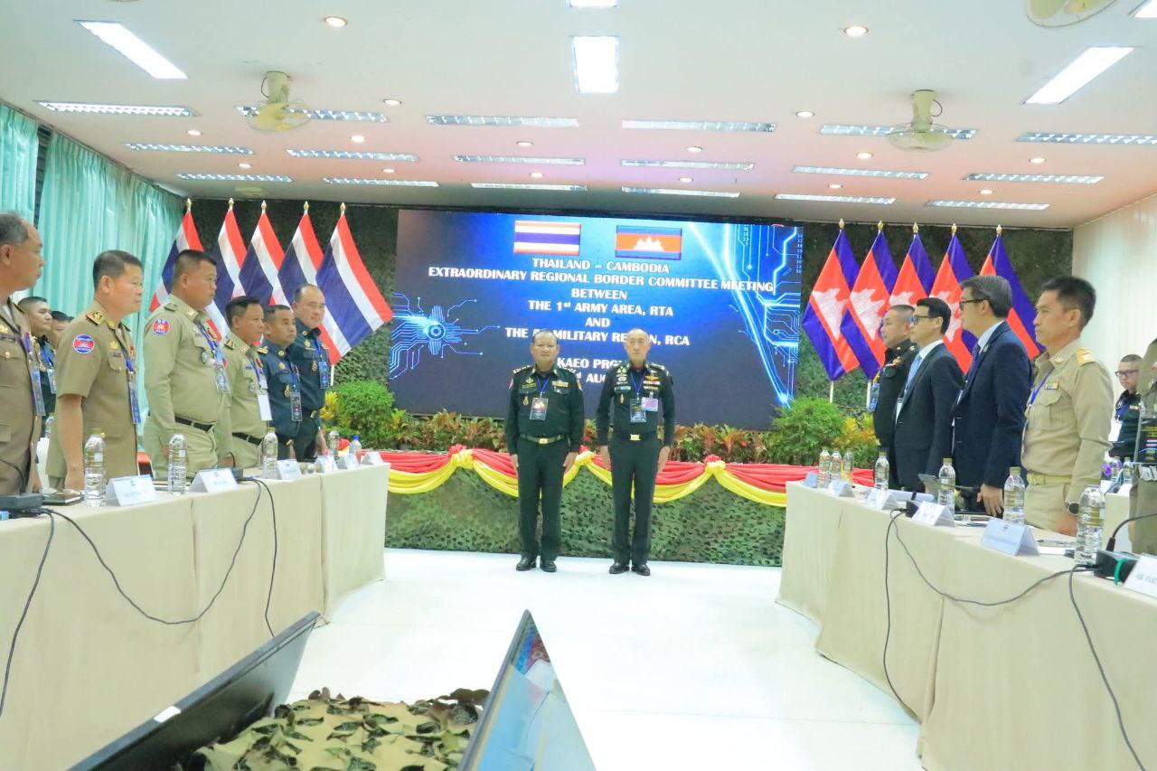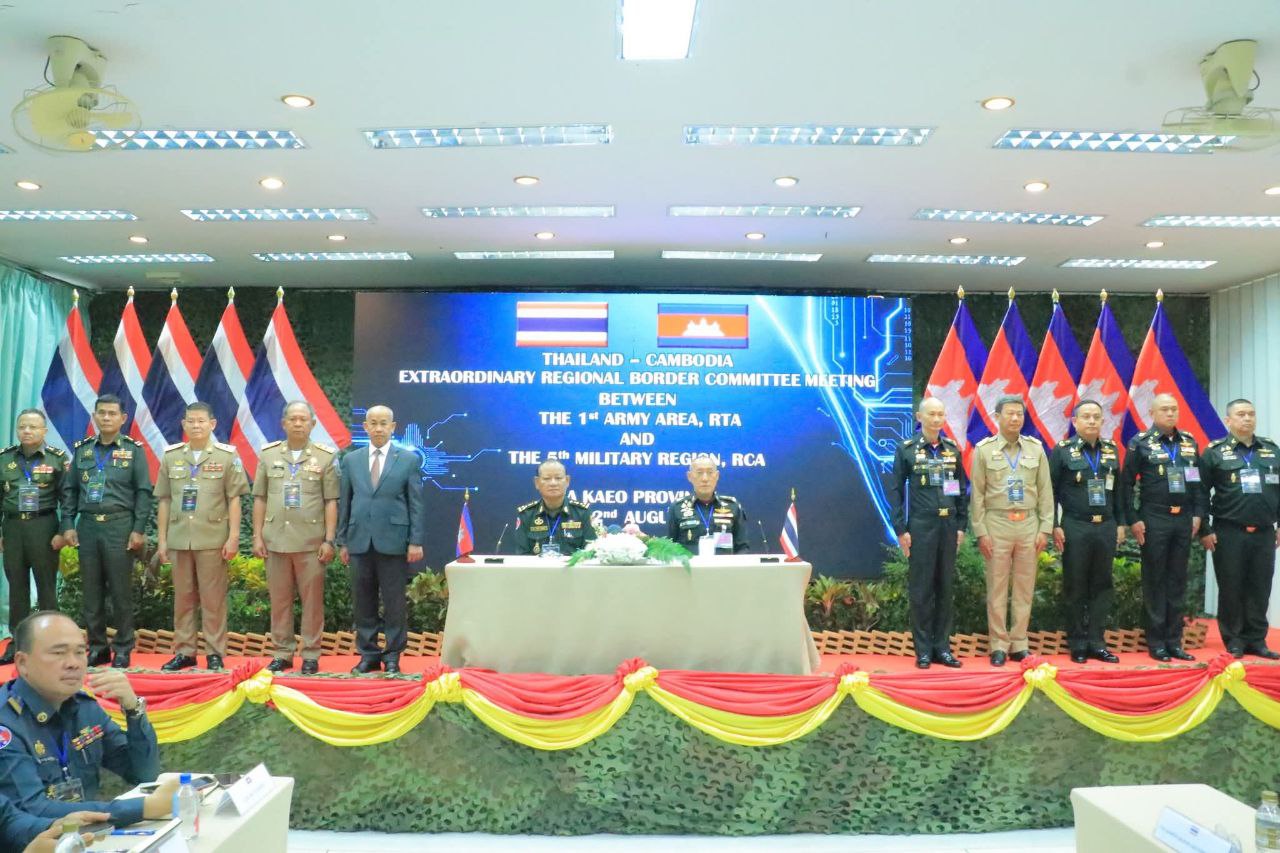 គណៈប្រតិភូកម្ពុជា ដឹកនាំដោយ ឧត្តមសេនីយ៍ឯក ឯក សំអូន មេបញ្ជាការយោធភូមិភាគទី៥ និងជាសហប្រធាននៃកិច្ចប្រជុំវិសាមញ្ញរបស់គណៈកម្មាធិការព្រំដែនថ្នាក់យោធភូមិភាគ (RBC)។ គណៈប្រតិភូថៃ ដឹកនាំដោយ ឧត្តមសេនីយ៍ឯក Amarit Boonsuya មេបញ្ជាការ កងទ័ពភូមិភាគទី១ និងជាសហប្រធាននៃកិច្ចប្រជុំវិសាមញ្ញរបស់គណៈកម្មាធិការព្រំដែនថ្នាក់យោធភូមិភាគ (RBC)។ កិច្ចប្រជុំវិសាមញ្ញរបស់គណៈកម្មាធិការព្រំដែនថ្នាក់យោធភូមិភាគកម្ពុជា-ថៃ (RBC) បានបញ្ចប់ដោយជោគជ័យនៅវេលាម៉ោង១១:១៥នាទីព្រឹកថ្ងៃដដែល ដោយភាគីកម្ពុជា និងថៃបានបញ្ជាក់ពីការប្តេជ្ញាចិត្តយ៉ាងមុតមាំ ក្នុងការអនុវត្តបទឈប់បាញ់ និងគោលការណ៍ឯកភាពទាំង១៣ចំណុច ការពង្រឹងបន្ថែមទៀតនូវទំនាក់ទំនងទ្វេភាគី និងការស្តារប្រក្រតីភាពឡើងវិញនៅតាមតំបន់ព្រំដែន។ ភាគីទាំងពីរក៏បានឯកភាពគ្នាក្នុងការរៀបចំកិច្ចប្រជុំបន្ទាប់របស់គណៈកម្មាធិការកិច្ចការព្រំដែនថ្នាក់យោធភូមិភាគ (RBC) ក្នុងរយៈពេលមួយខែក្រោយកិច្ចប្រជុំវិសាមញ្ញនេះ ឬតាមពេលវេលាសមស្រប ដោយប្រទេសកម្ពុជាធ្វើជាម្ចាស់ផ្ទះ។