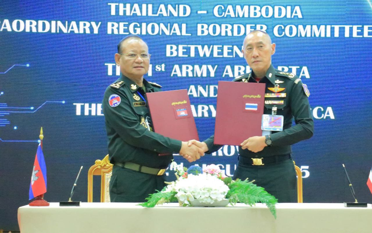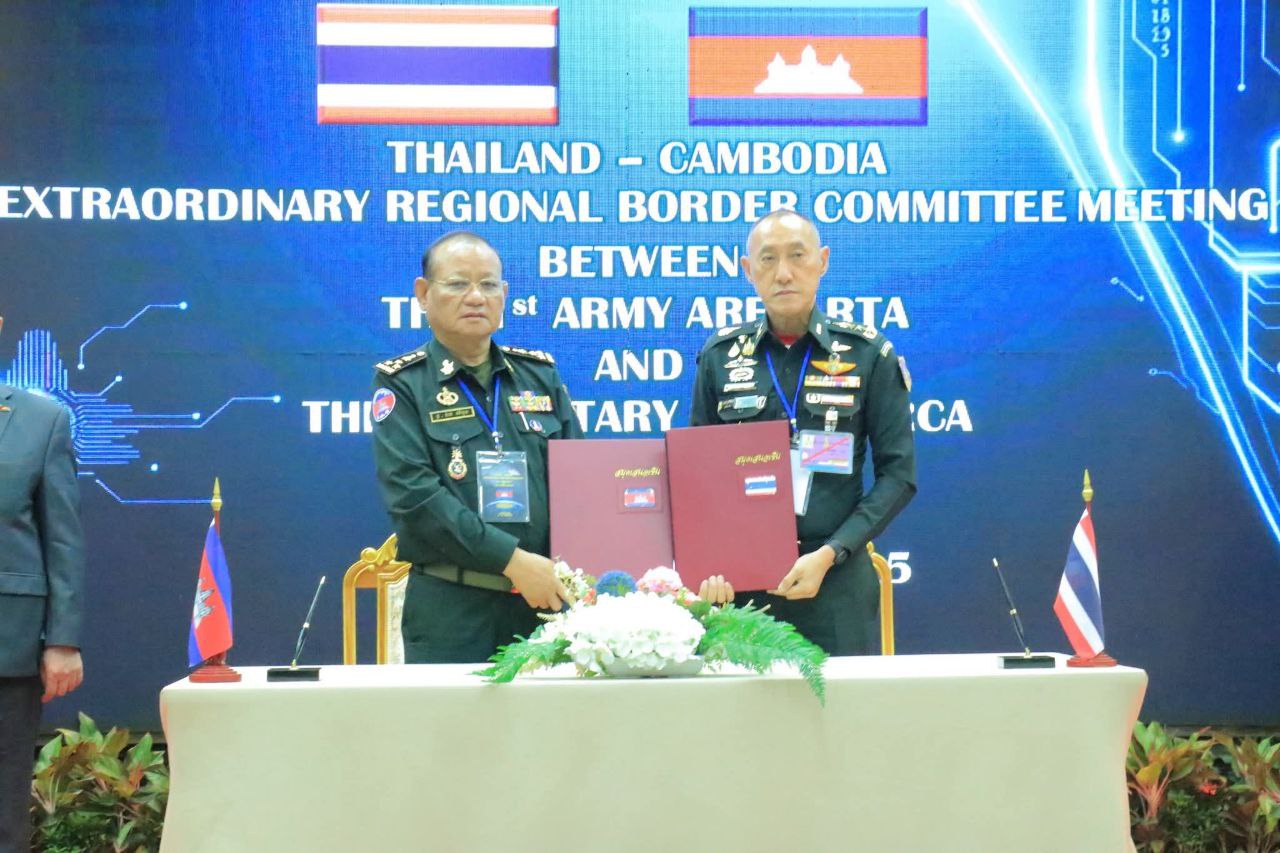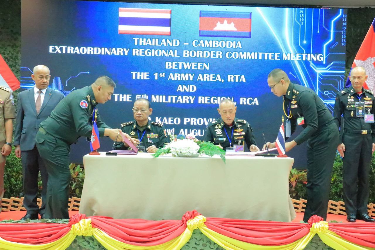 គណៈប្រតិភូកម្ពុជា ដឹកនាំដោយ ឧត្តមសេនីយ៍ឯក ឯក សំអូន មេបញ្ជាការយោធភូមិភាគទី៥ និងជាសហប្រធាននៃកិច្ចប្រជុំវិសាមញ្ញរបស់គណៈកម្មាធិការព្រំដែនថ្នាក់យោធភូមិភាគ (RBC)។ គណៈប្រតិភូថៃ ដឹកនាំដោយ ឧត្តមសេនីយ៍ឯក Amarit Boonsuya មេបញ្ជាការ កងទ័ពភូមិភាគទី១ និងជាសហប្រធាននៃកិច្ចប្រជុំវិសាមញ្ញរបស់គណៈកម្មាធិការព្រំដែនថ្នាក់យោធភូមិភាគ (RBC)។ កិច្ចប្រជុំវិសាមញ្ញរបស់គណៈកម្មាធិការព្រំដែនថ្នាក់យោធភូមិភាគកម្ពុជា-ថៃ (RBC) បានបញ្ចប់ដោយជោគជ័យនៅវេលាម៉ោង១១:១៥នាទីព្រឹកថ្ងៃដដែល ដោយភាគីកម្ពុជា និងថៃបានបញ្ជាក់ពីការប្តេជ្ញាចិត្តយ៉ាងមុតមាំ ក្នុងការអនុវត្តបទឈប់បាញ់ និងគោលការណ៍ឯកភាពទាំង១៣ចំណុច ការពង្រឹងបន្ថែមទៀតនូវទំនាក់ទំនងទ្វេភាគី និងការស្តារប្រក្រតីភាពឡើងវិញនៅតាមតំបន់ព្រំដែន។ ភាគីទាំងពីរក៏បានឯកភាពគ្នាក្នុងការរៀបចំកិច្ចប្រជុំបន្ទាប់របស់គណៈកម្មាធិការកិច្ចការព្រំដែនថ្នាក់យោធភូមិភាគ (RBC) ក្នុងរយៈពេលមួយខែក្រោយកិច្ចប្រជុំវិសាមញ្ញនេះ ឬតាមពេលវេលាសមស្រប ដោយប្រទេសកម្ពុជាធ្វើជាម្ចាស់ផ្ទះ។