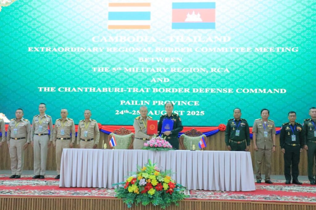 ប៉ៃលិន៖ នៅថ្ងៃទី២៤ ខែសីហា ឆ្នាំ២០២៥ ក្រុមលេខាធិការដ្ឋាននៃគណៈកម្មាធិការព្រំដែនថ្នាក់ភូមិភាគ កម្ពុជា–ថៃ (RBC) បានរៀបចំកិច្ចប្រជុំសាមញ្ញមួយនៅខេត្តប៉ៃលិន។ កិច្ចប្រជុំនេះធ្វើឡើងរវាងបញ្ជាការដ្ឋានយោធភូមិភាគទី៥ នៃកងយោធពលខេមរភូមិន្ទ និងបញ្ជាការដ្ឋានកងការពារព្រំដែន ច័ន្ទបុរី–ត្រាត នៃព្រះរាជាណាចក្រថៃ ដើម្បីពិភាក្សានិងពង្រឹងកិច្ច សហប្រតិបត្តិការទ្វេរភាគីលើការងារព្រំដែន។