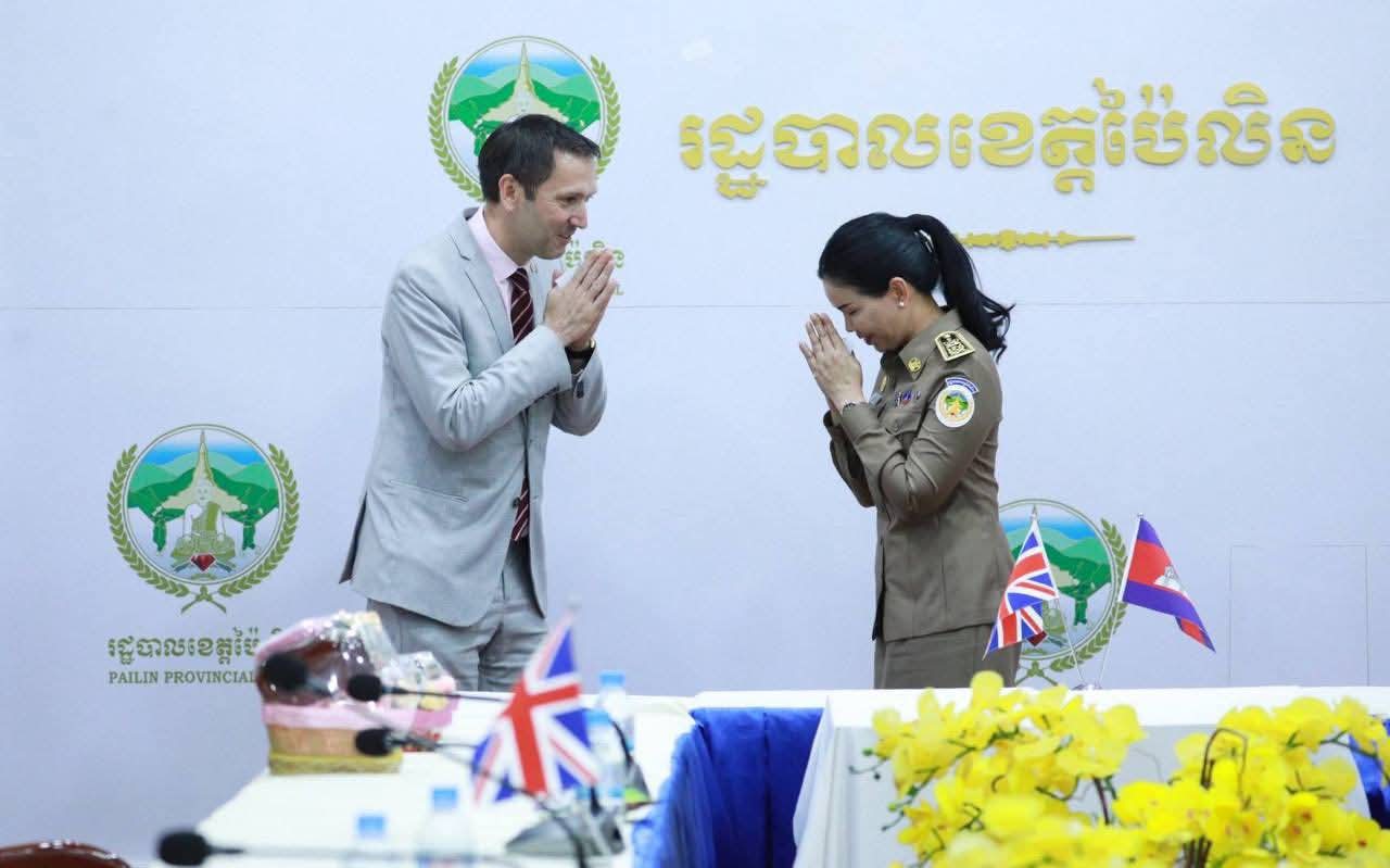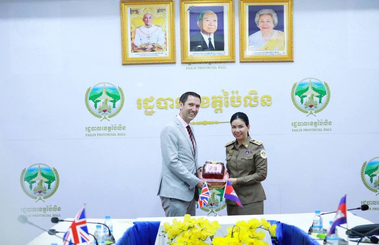 លោកជំទាវបណ្ឌិត បាន ស្រីមុំ អភិបាលនៃគណៈអភិបាលខេត្តប៉ៃលិន បានទទួលស្វាគមន៍យ៉ាងកក់ក្តៅ ចំពោះ វត្តមាន ឯកឧត្តម ដូមីនីក វិលលៀមស៍ (Dominic Williams) ឯកអគ្គរាជទូតវិសាមញ្ញ និងពេញសមត្ថភាព នៃប្រទេស អង់គ្លេស ប្រចាំព្រះរាជាណាចក្រកម្ពុជា និងសហការី ដែលបានអញ្ជើញមកកាន់ទឹកដីខេត្តប៉ៃលិនកាលពីរសៀលថ្ងៃទី១៨ ខែកញ្ញា ឆ្នាំ២០២៥ ព្រមទាំងបានជម្រាបជូនអំពីស្ថានភាពភូមិសាស្រ្ត, ស្ថានភាពជីវភាពរស់នៅរបស់ប្រជាពលរដ្ឋ, ស្ថានភាពសេដ្ឋកិច្ច, ស្ថានភាពសន្តិសុខ និងសក្តានុពលរបស់ខេត្ត។