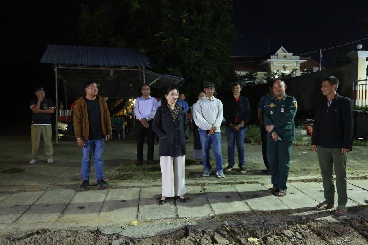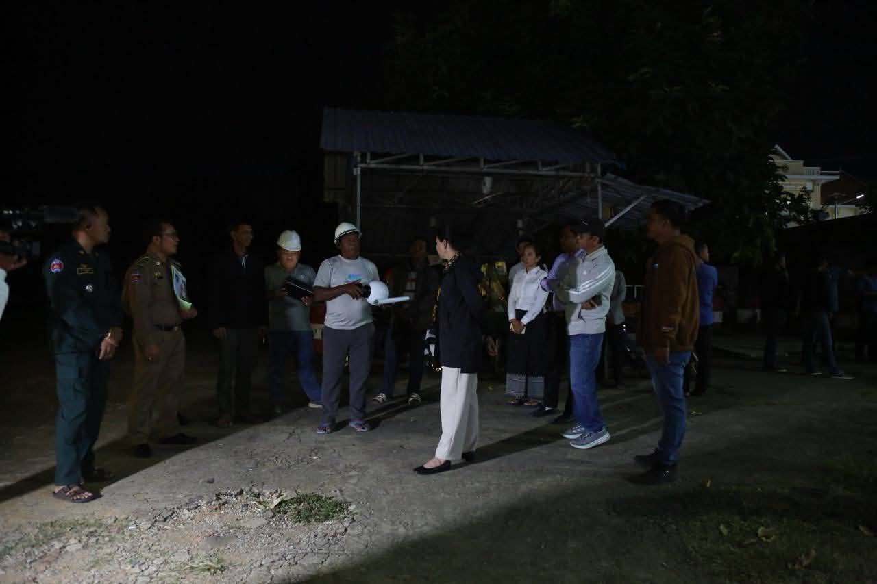 ប៉ៃលិន៖ នារាត្រីថ្ងៃទី២៨ ខែវិច្ឆិកា ឆ្នាំ២០២៥ លោកជំទាវបណ្ឌិត បាន ស្រីមុំ អភិបាល នៃគណៈអភិបាលខេត្តប៉ៃលិន អមដំណើរដោយក្រុមការងារ បានអញ្ជើញពិនិត្យមើលការរៀបចំកែរលម្អហេដ្ឋារចនាសម្ព័ន្ធ និងសោភ័ណភាព នៅច្រកទ្វារព្រំដែនអន្តរជាតិព្រំ ស្ថិតក្នុងភូមិផ្សារព្រំ ឃុំស្ទឹងកាច់ ស្រុកសាលាក្រៅ ខេត្តប៉ៃលិន ដើម្បីបម្រើដល់ប្រយោជន៍សាធារណៈ។