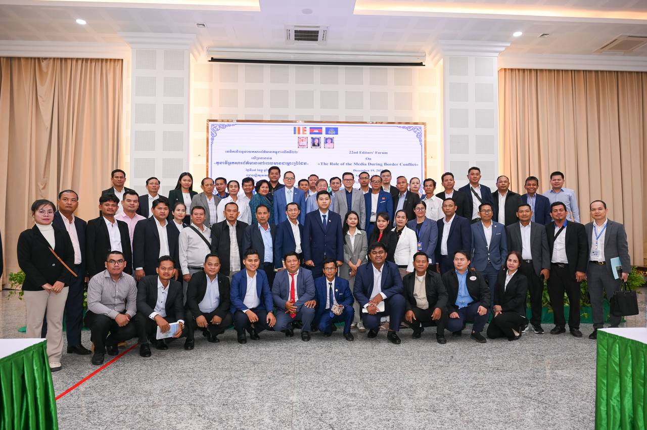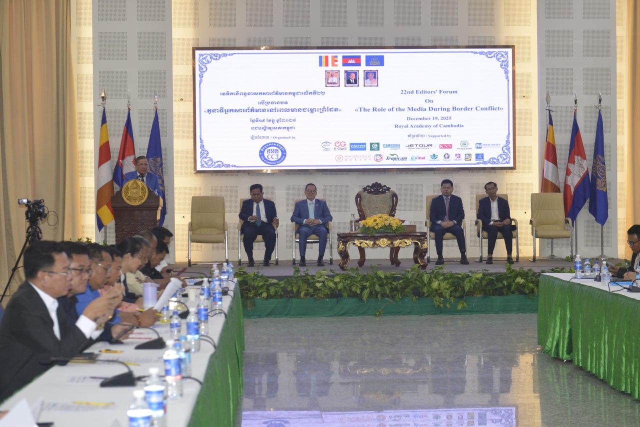 អាន៖ពេញមួយថ្ងៃទី១៩ ខែធ្នូ ឆ្នាំ២០២៥ ក្លិបអ្នកកាសែតកម្ពុជាបានរៀបចំវេទិកានិពន្ធនាយកសារព័ត៌មានកម្ពុជាលើកទី២២ លើប្រធានបទ«តួនាទីអ្នកសារព័ត៌មាននៅពេលមានជម្លោះព្រំដែន» ដោយមានការចូលរួមពីអ្នកគ្រប់គ្រងស្ថាប័នសារព័ត៌មាន និពន្ធនាយក និពន្ធនាយករង និងអ្នកទទួលខុសត្រូវក្នុងការផ្សព្វផ្សាយព័ត៌មានជិត២០០នាក់ និងវាគ្មិនដៃលមានបទពិសោធន៍លើវិស័យសារព័តមាន។