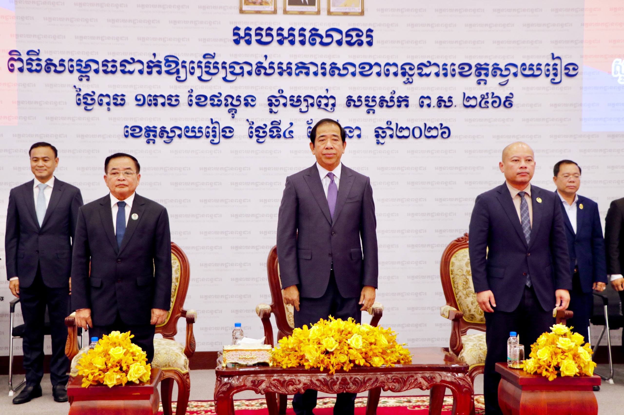 នារសៀលថ្ងៃពុធ ១រោច ខែផល្គុន ឆ្នាំម្សាញ់ សប្តស័ក ពុទ្ធសករាជ ២៥៦៩ ត្រូវនឹងថ្ងៃទី៤ ខែមីនា ឆ្នាំ២០២៦នេះ ឯកឧត្តម ម៉ែន វិបុល ប្រធានក្រុមប្រឹក្សាខេត្តស្វាយរៀង និងឯកឧត្តម ប៉េង ពោធិ៍សា អភិបាលខេត្តបានអញ្ជេីញជាគណៈអធិបតីក្នុងពិធីសម្ពោធដាក់ឲ្យប្រើប្រាស់អគារសាខាពន្ធដារខេត្តស្វាយរៀងស្ថិតនៅភូមិពោធិ៍តាហោ សង្កាត់ពោធិ៍តាហោ ក្រុងស្វាយរៀង ក្រោមអធិបតីភាពឯកឧត្តម គង់ វិបុល រដ្ឋមន្ត្រីប្រតិភូអមនាយករដ្ឋមន្ត្រី និងជាប្រតិភូ រាជរដ្ឋាភិបាលទទួលបន្ទុកជាអគ្គនាយក នៃអគ្គនាយកដ្ឋានពន្ធដារ។