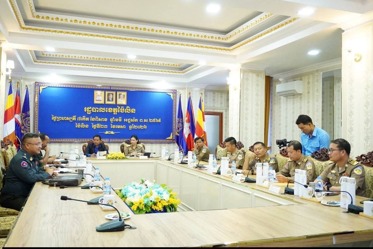 ប៉ៃលិន៖ លោកជំទាវបណ្ឌិត បាន ស្រីមុំ អភិបាល នៃគណៈអភិបាលខេត្តប៉ៃលិន និងឯកឧត្តមប្រធានក្រុមប្រឹក្សាខេត្ត នាព្រឹកថ្ងៃទី២៣ ខែមេសា ឆ្នាំ២០២៦ បានអញ្ជើញចូលរួមកិច្ចប្រជុំពេញអង្គគណៈរដ្ឋមន្រ្តី តាមរយៈប្រព័ន្ធវីឌីអូ ខនហ្វឺរេន ស្ថិតក្រោមអធិបតីភាពដ៏ខ្ពង់ខ្ពស់ សម្ដេចមហាបវរធិបតី ហ៊ុន ម៉ាណែត នាយករដ្ឋមន្ត្រី នៃព្រះរាជាណាចក្រកម្ពុជា ។